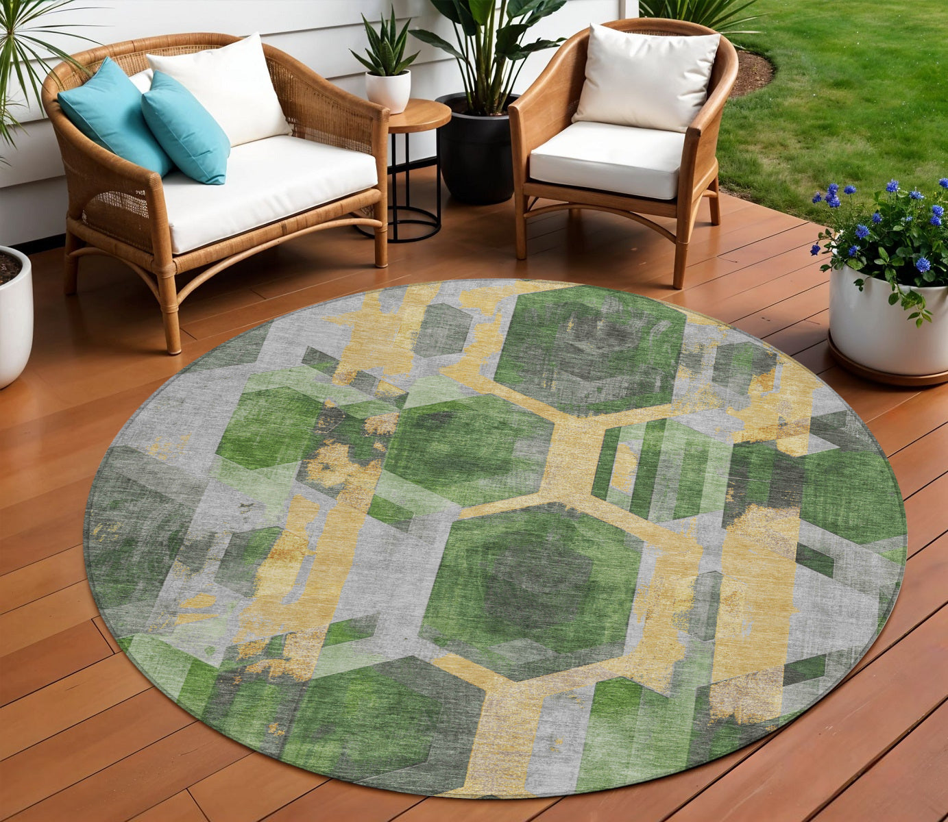 - Classically shaped, this versatile round rug is a great way to accent your indoor or outdoor space.
