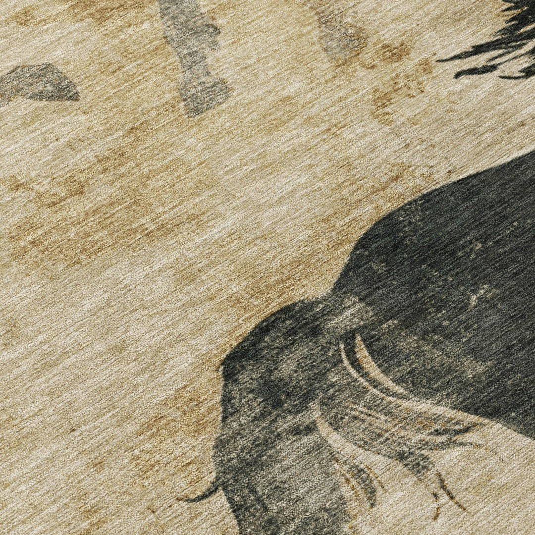 - Crafted from durable polyester, this rug features a stylish beige and charcoal color scheme that complements any outdoor decor.