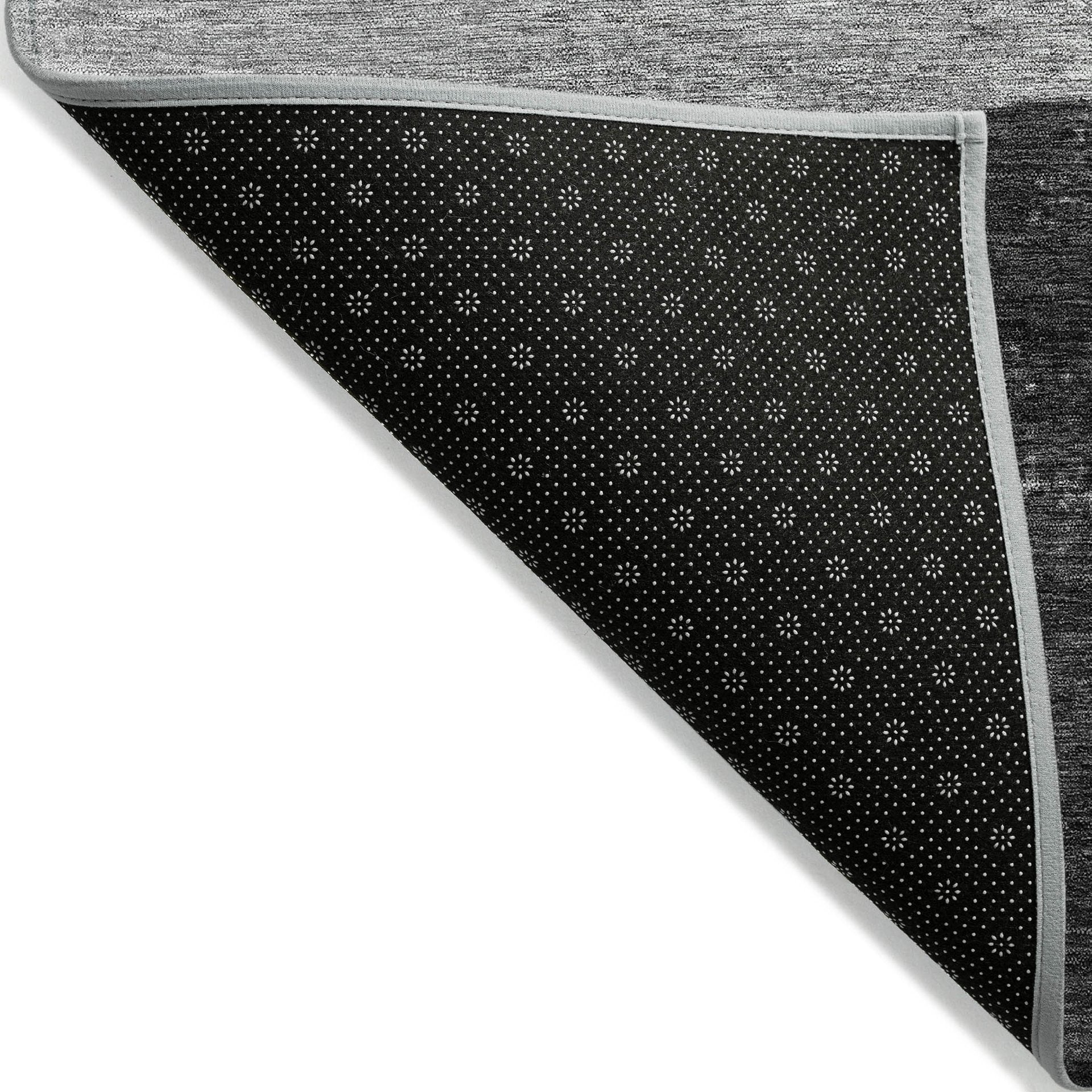 - A felt backing covers this rug to finish the look, keep the fibers in place, and help to keep the rug from slipping.