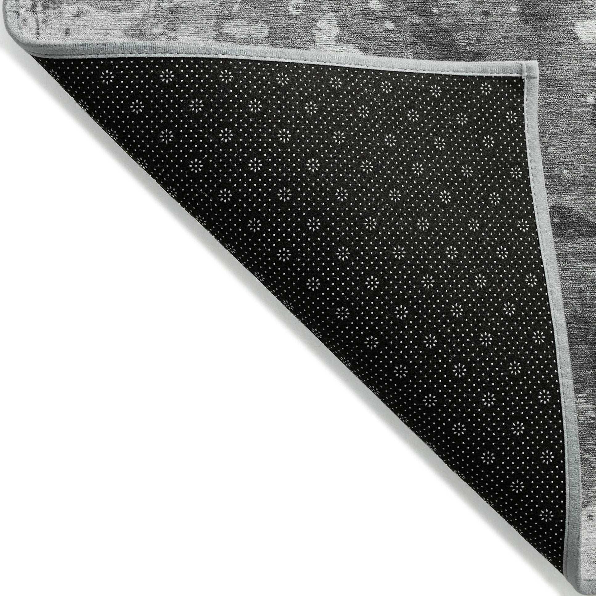 - A felt backing covers this rug to finish the look, keep the fibers in place, and help to keep the rug from slipping.