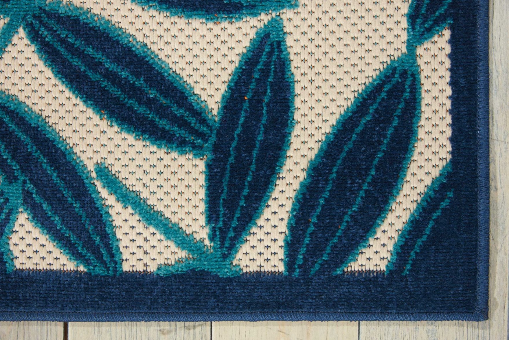 - Crafted from durable polypropylene, this machine-made rug is designed to withstand outdoor elements while adding a stylish touch to your space in blue and ivory.