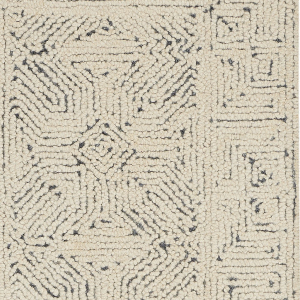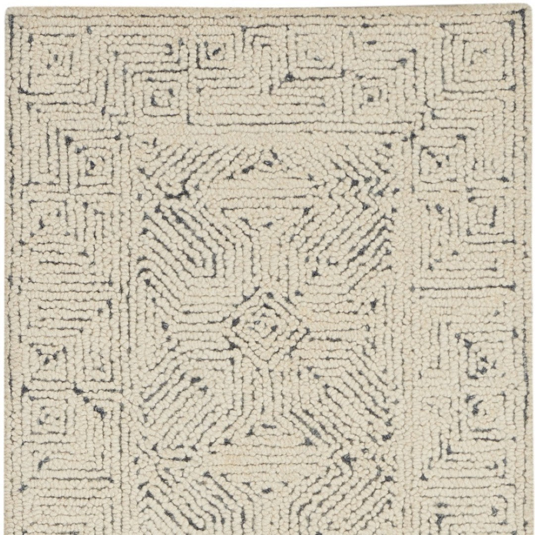 - Modern navy blue and ivory area rug suitable for the living room, constructed with machine-made precision.