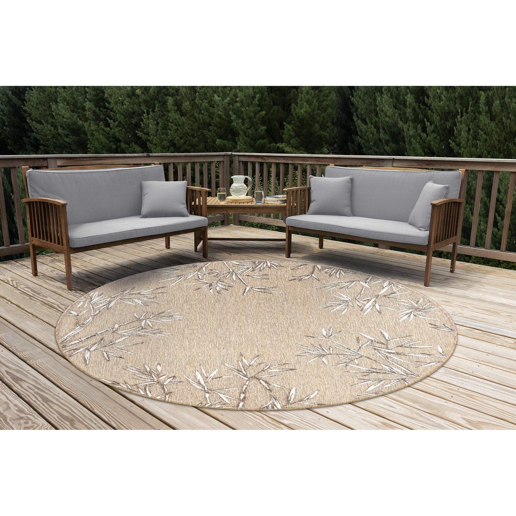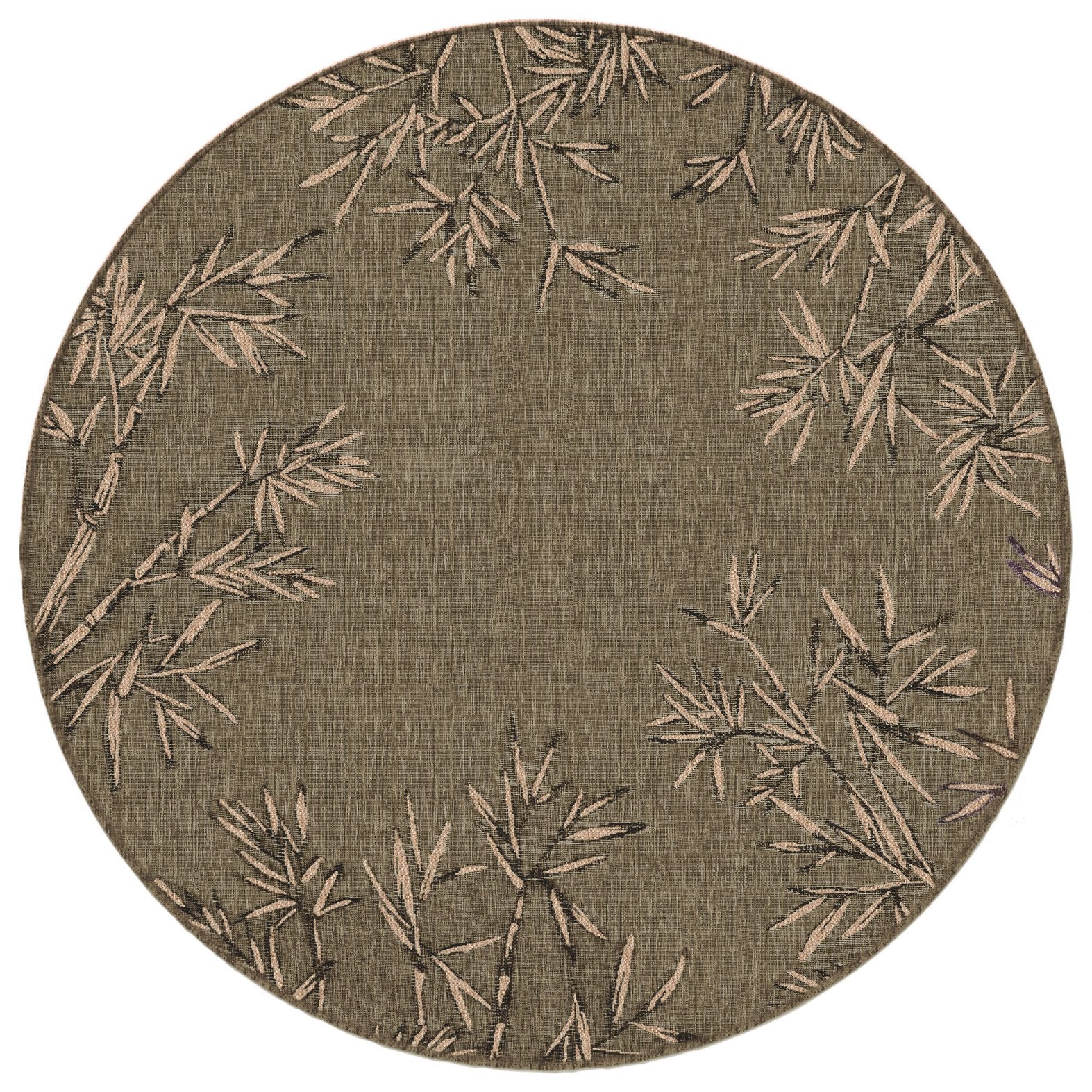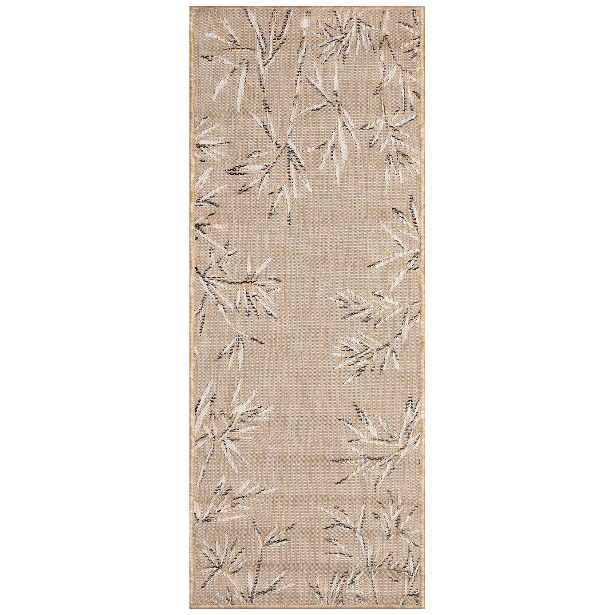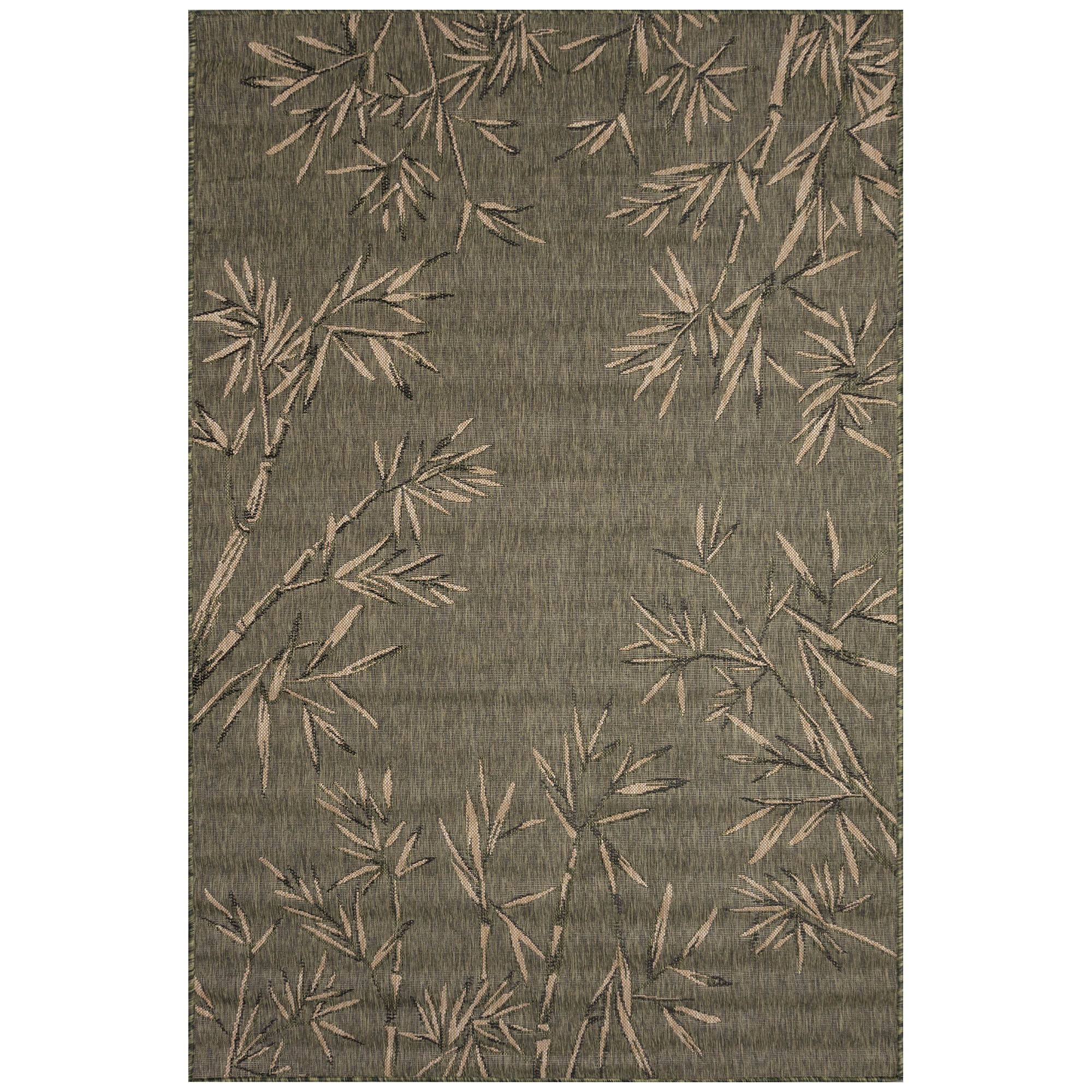 - This decorative area rug features a decorative border with wisps of bamboo leaves in ivory with black accents on an sand background.