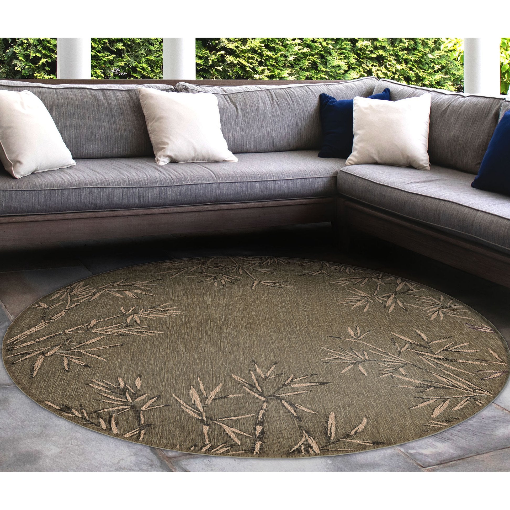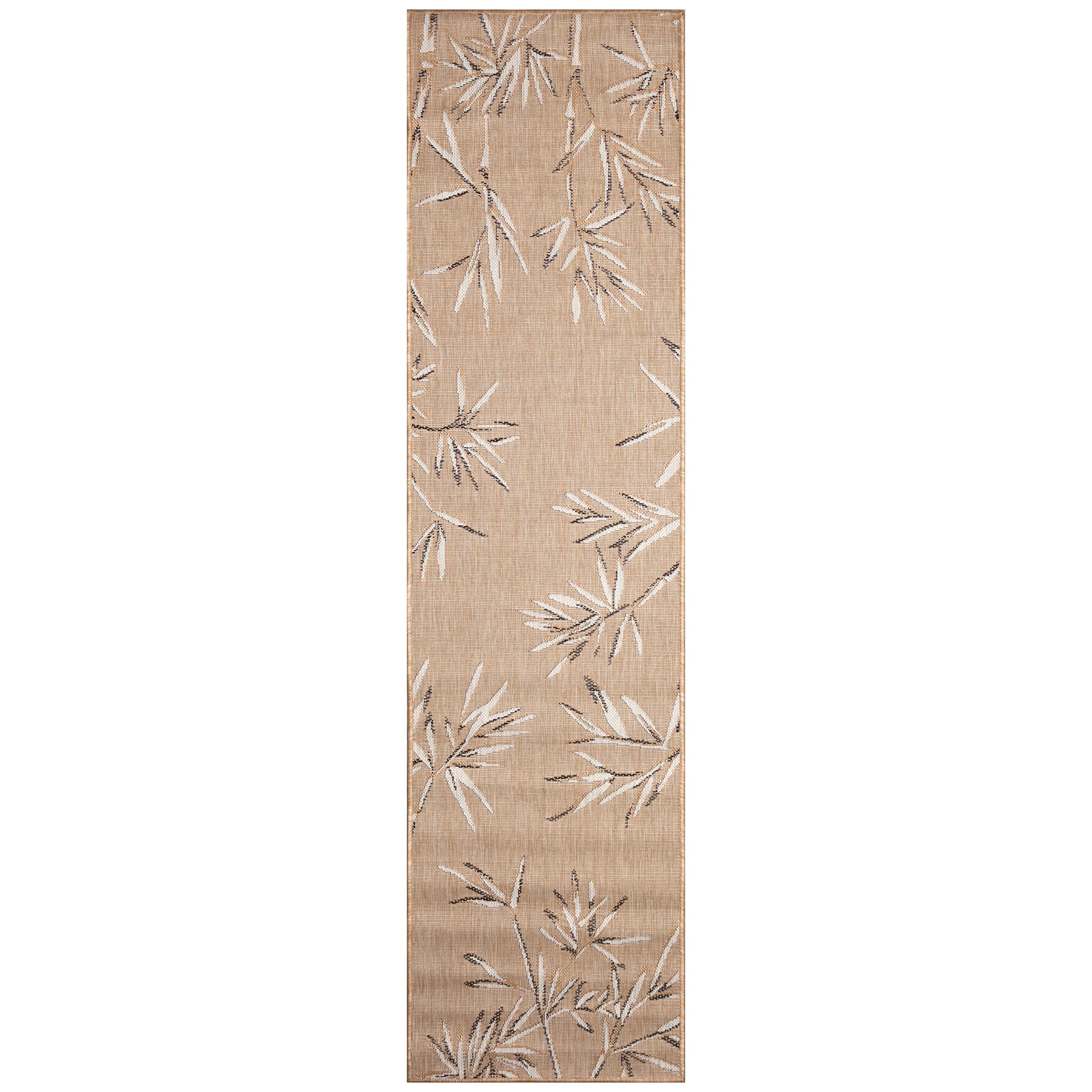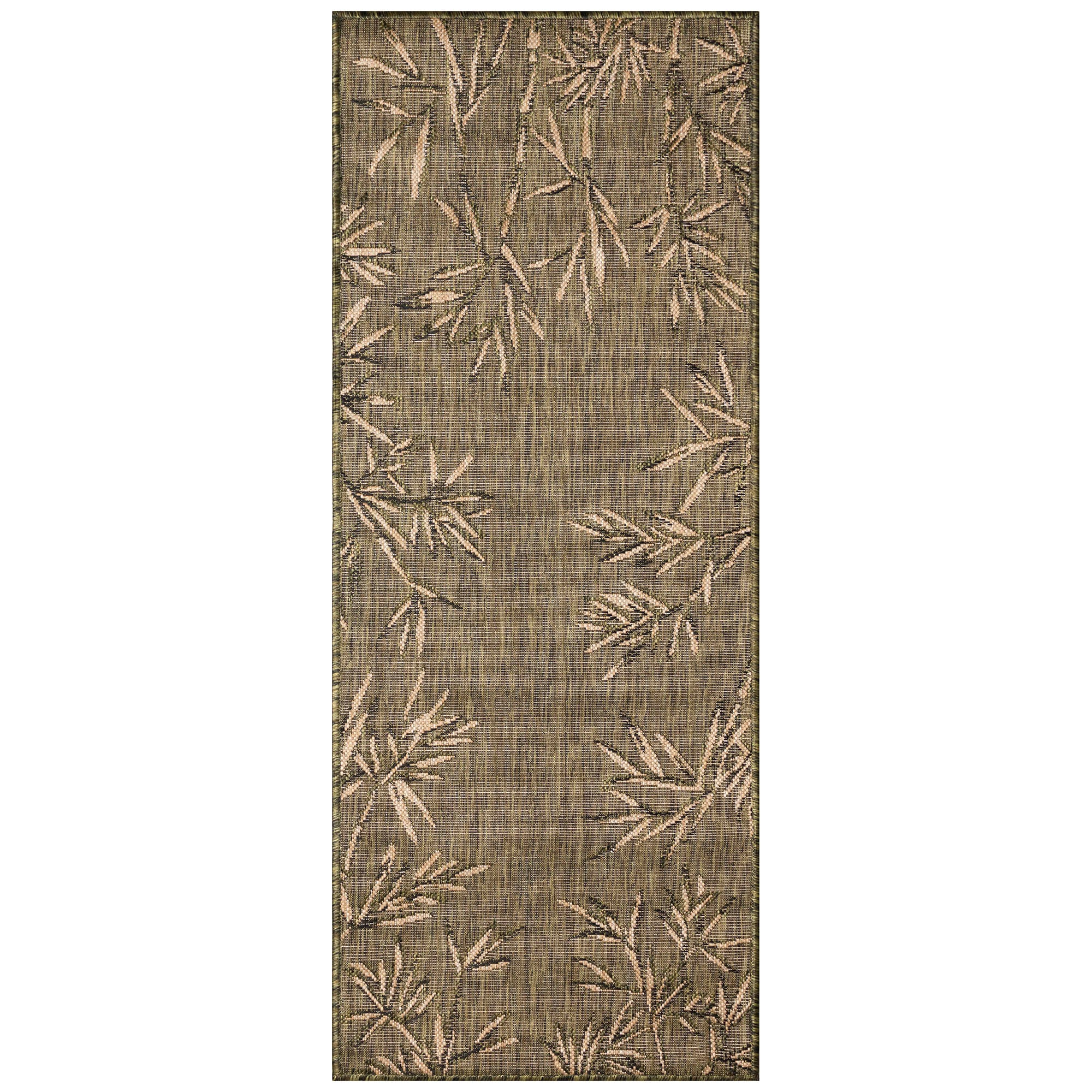 - This decorative area rug features a decorative border with wisps of bamboo leaves in ivory with black accents on an sand background.