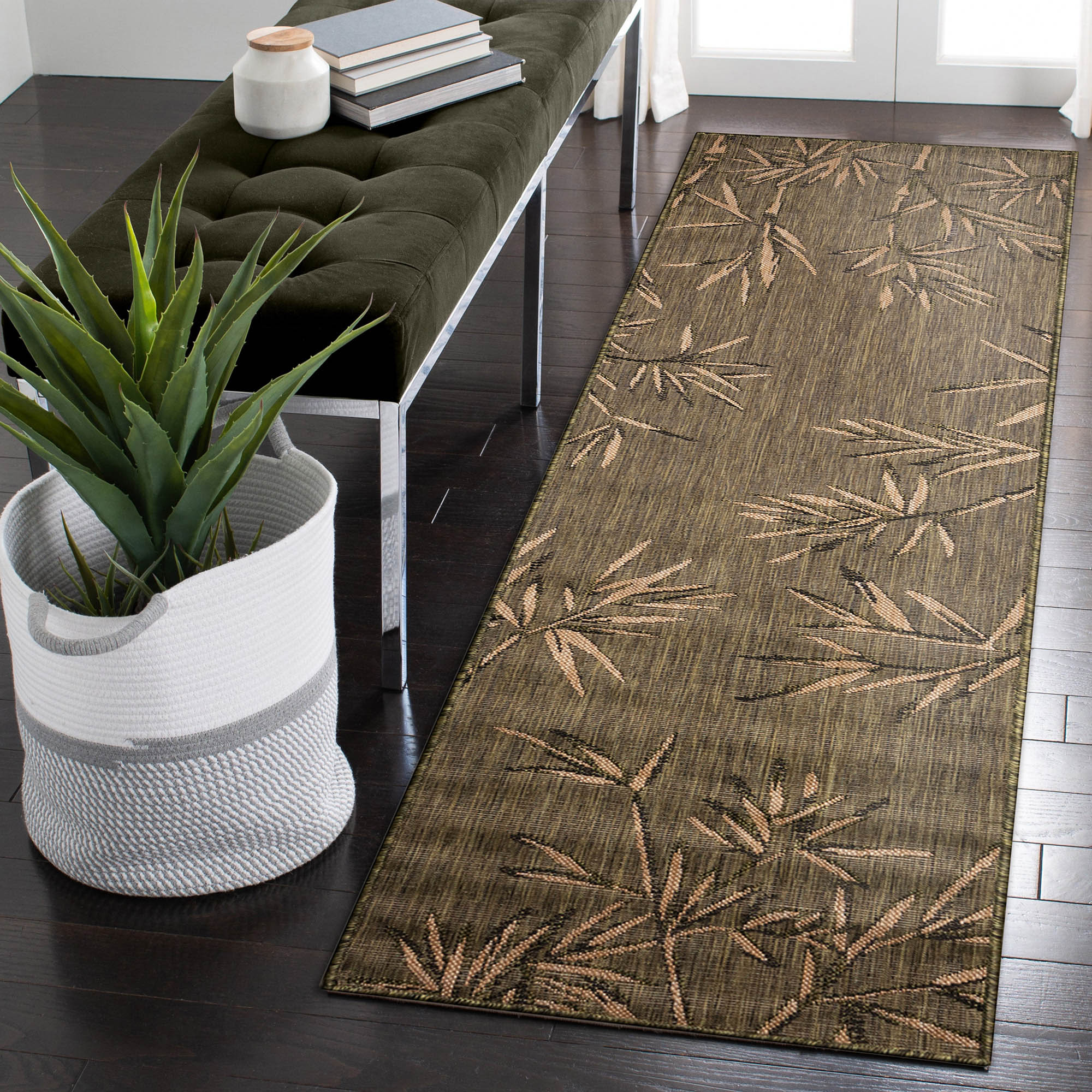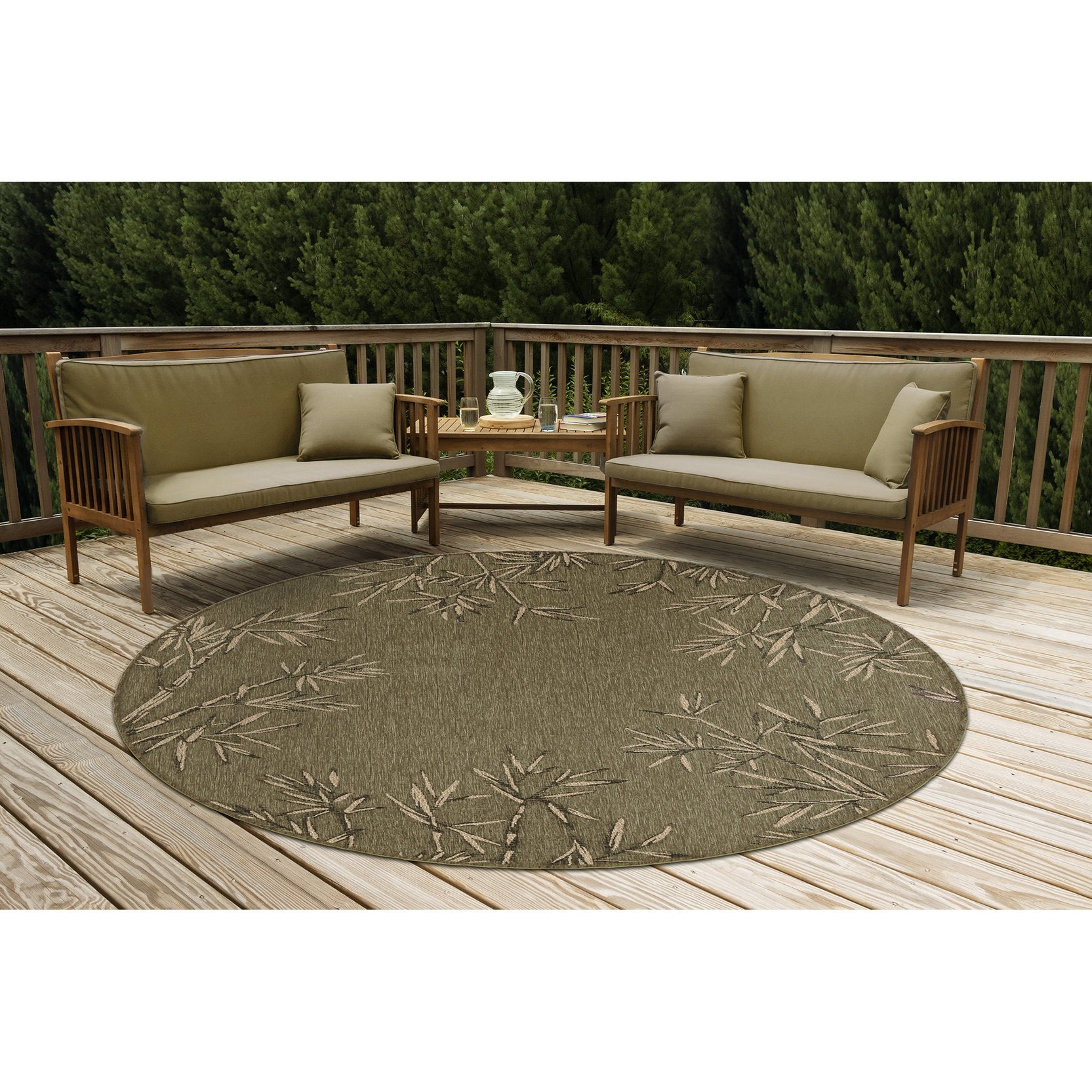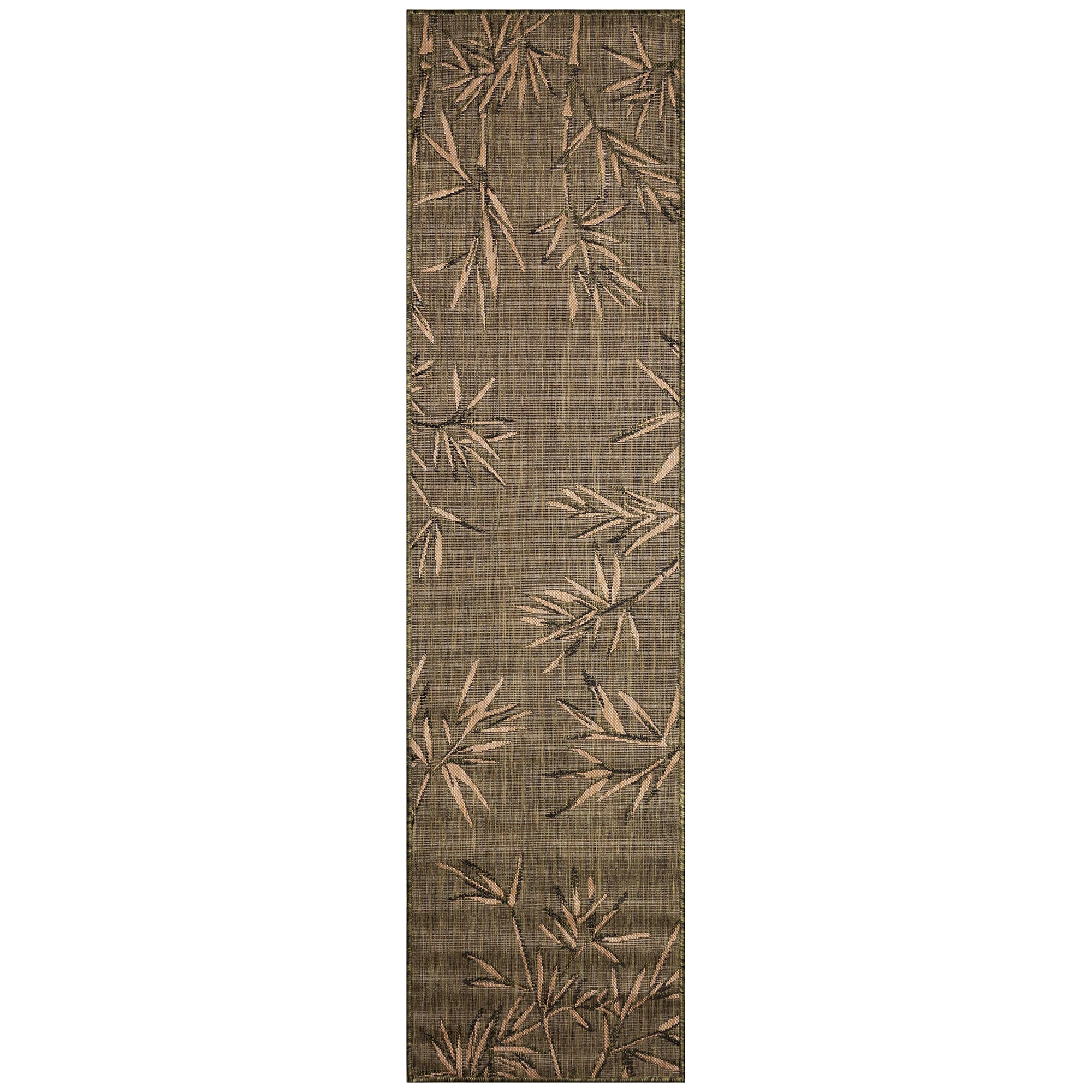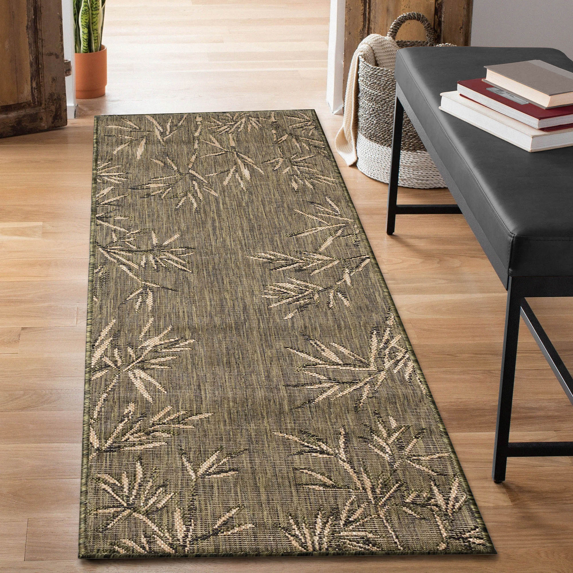 - This decorative area rug features a decorative border with wisps of bamboo leaves in ivory with black accents on an sand background.