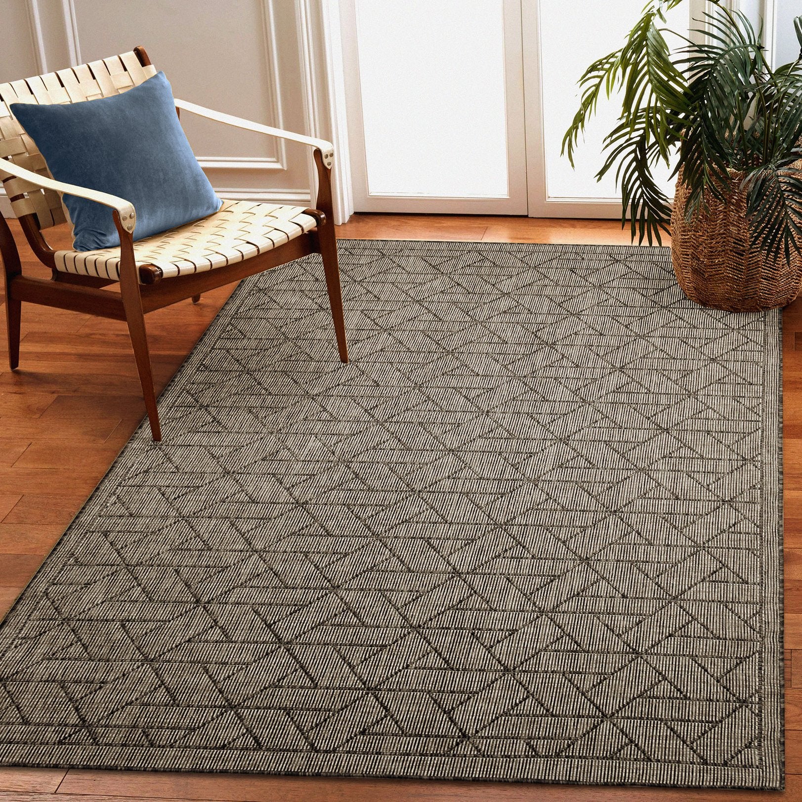 - Features a solid background with a raised stitched Geometric triangle Transitional, Abstract,All-Purpose, Casual, Lodge, Graphic design throughout