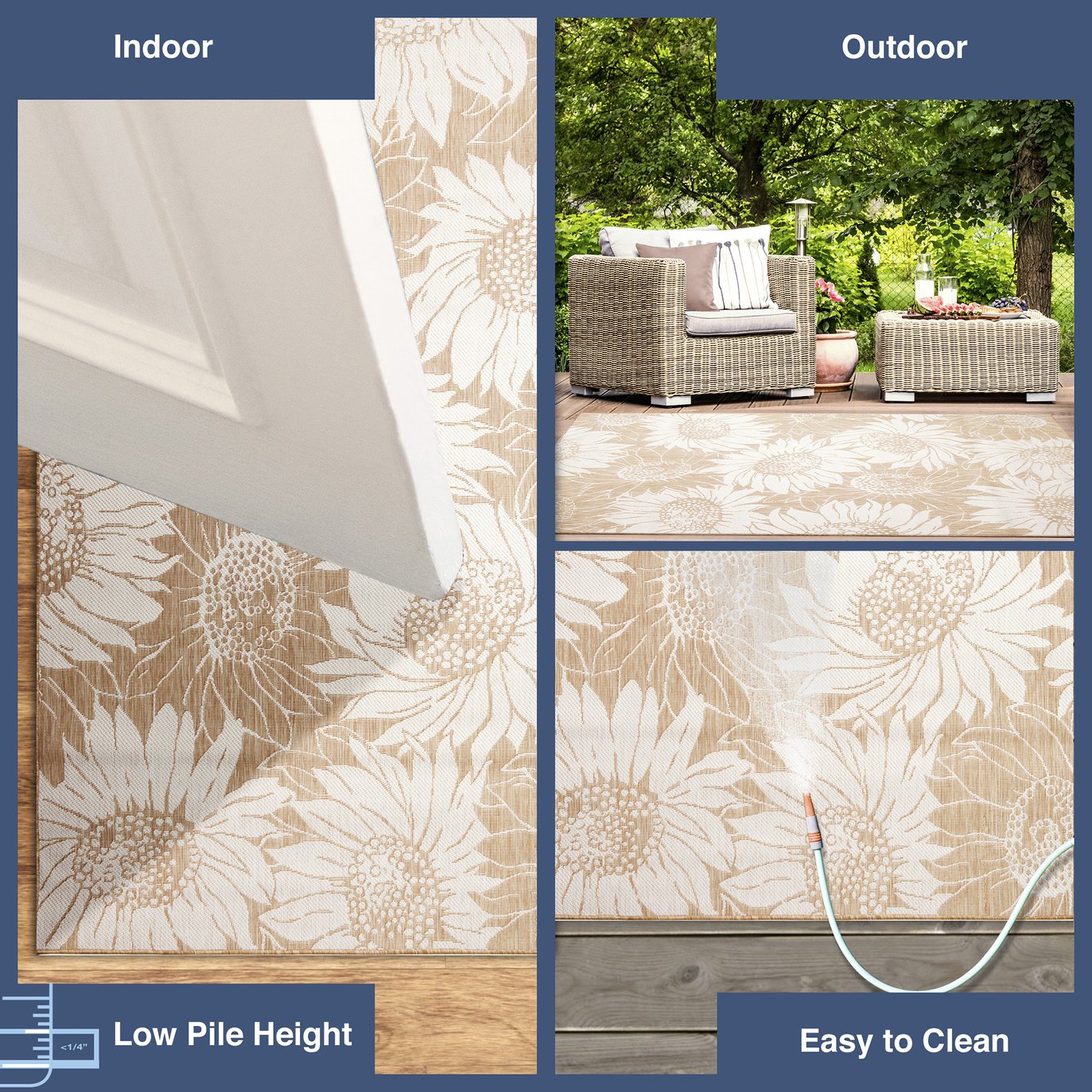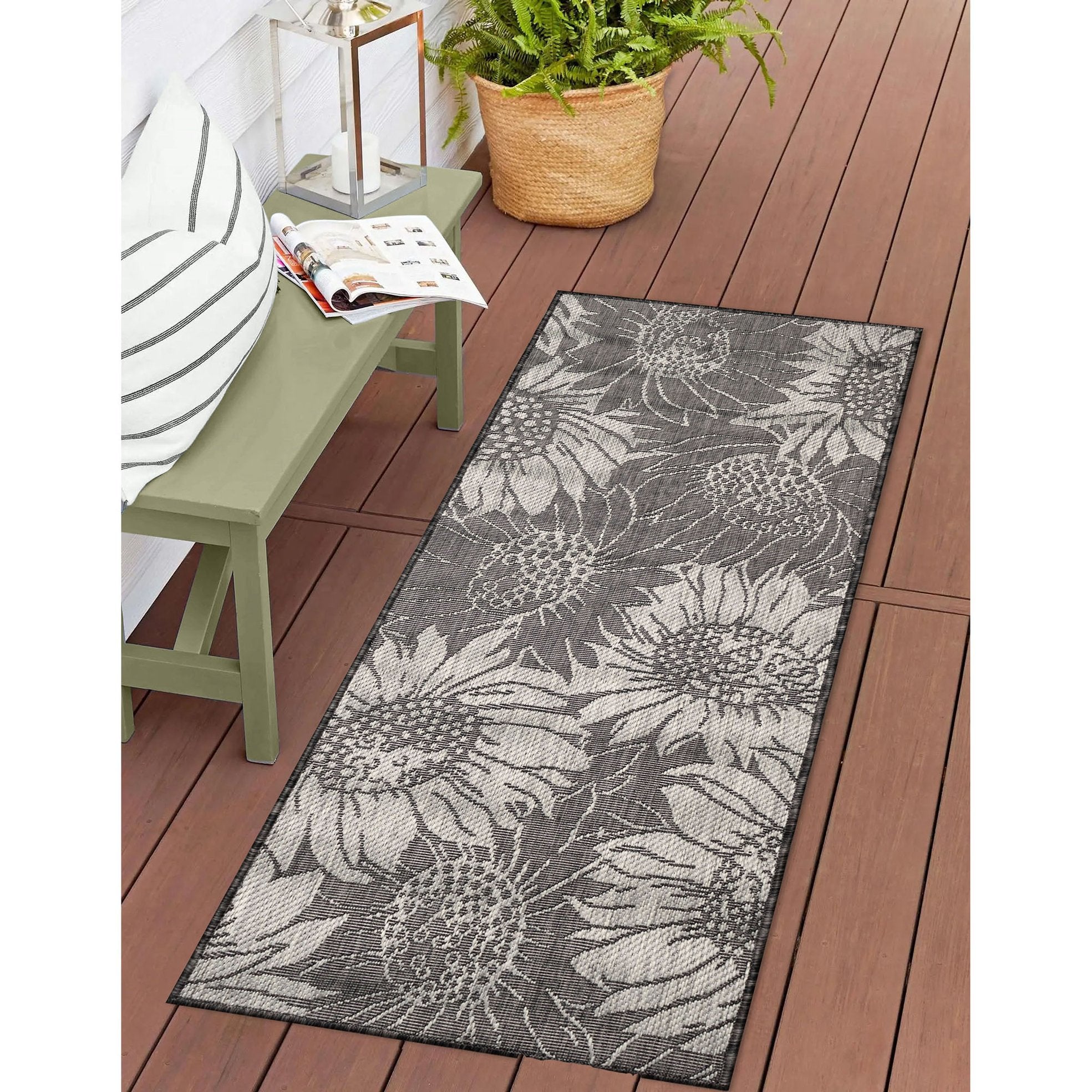 - Made from Weather Resistant 87% Polypropylene/13% Polyester for high traffic areas, Flatweave, Easy Care, Performance, Durable, Fade Resistant, Non-Shed, UV Protected, UV Stabilized