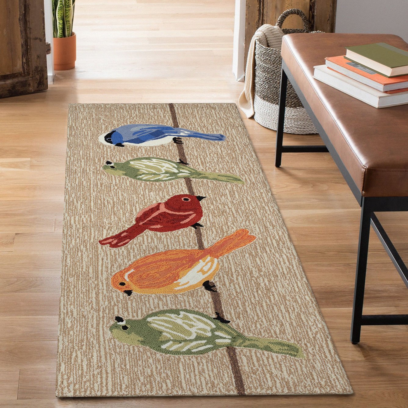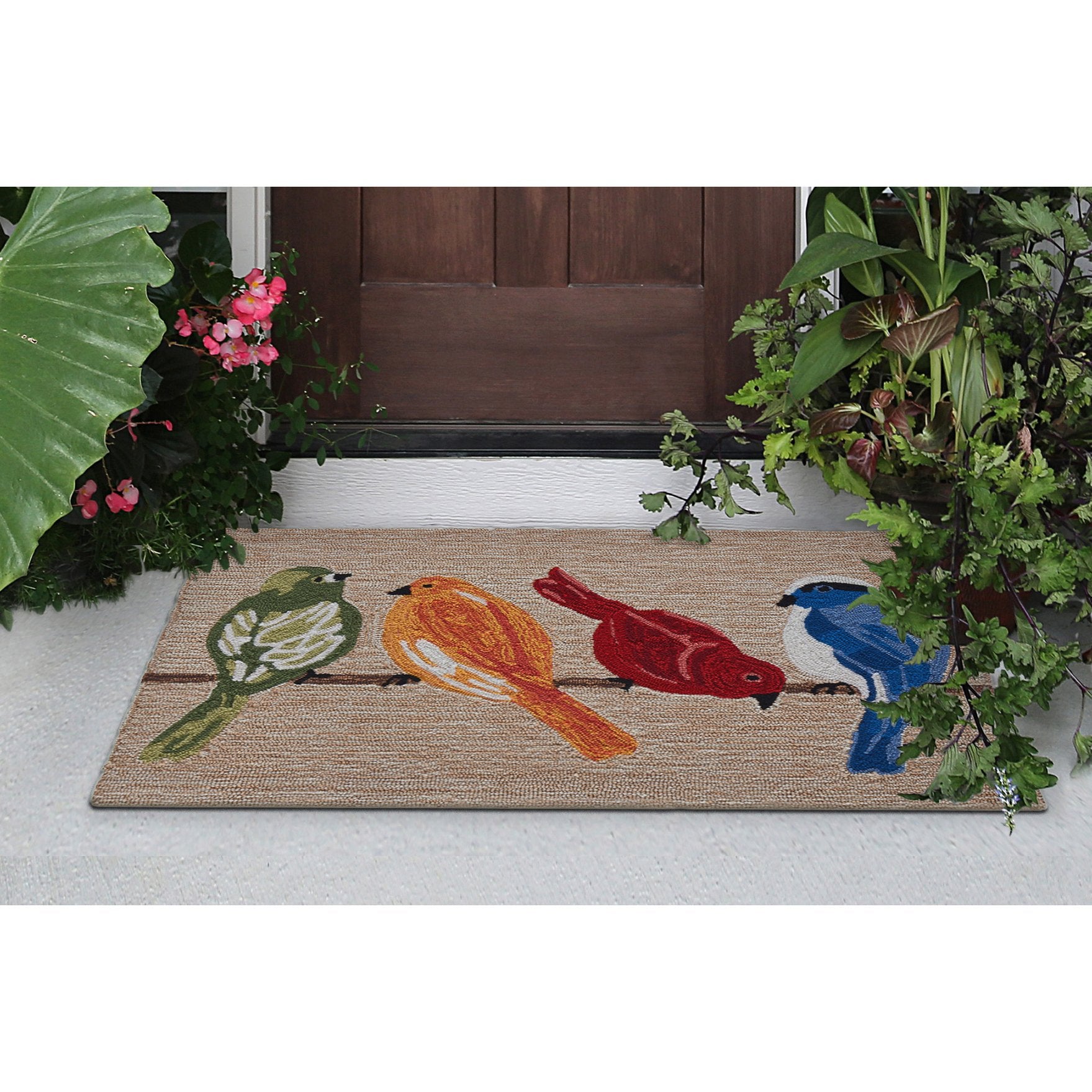 - A contemporary country garden mat features Colorful chirping Birds perched on a branch