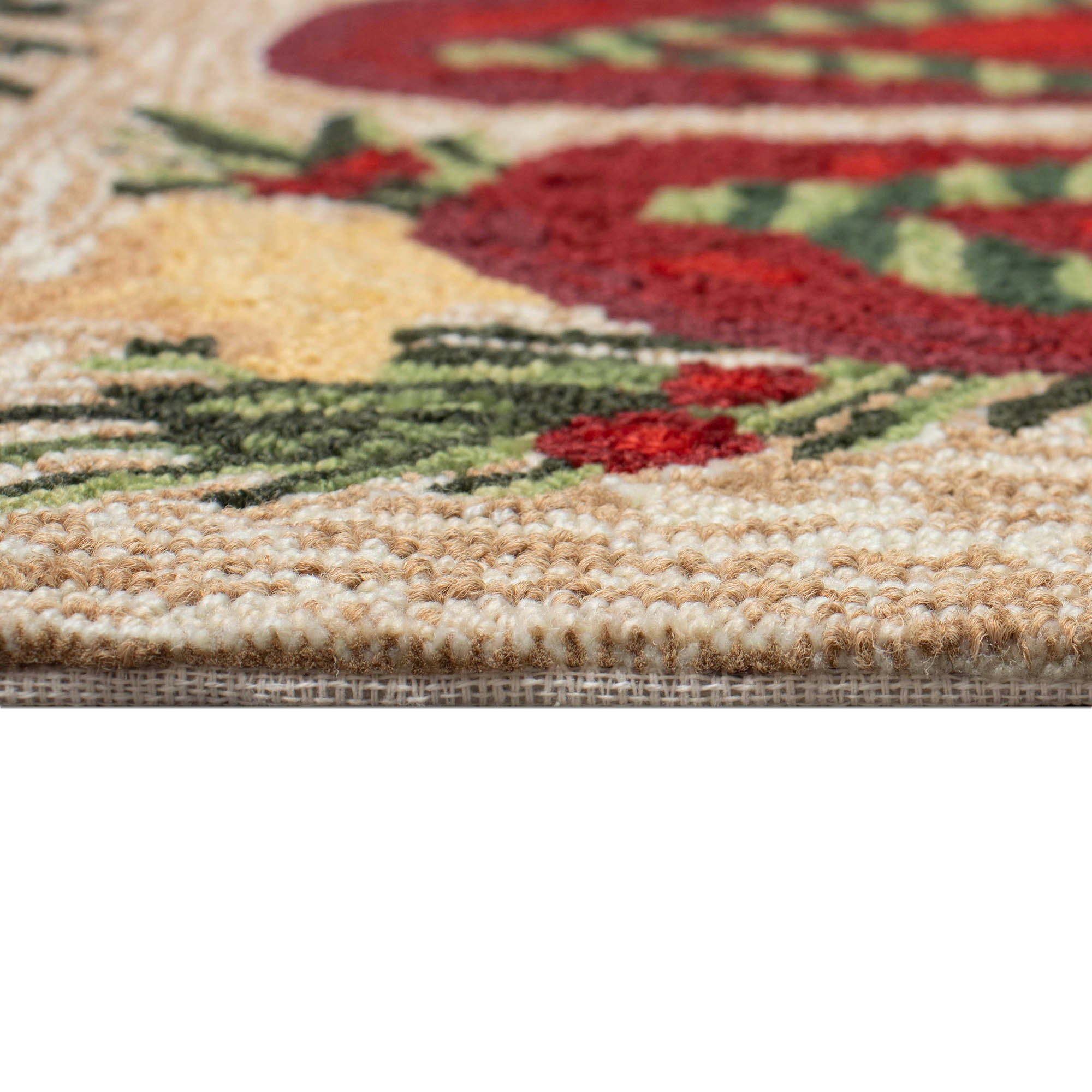 - Features a Holiday, Winter, Whimsical, Festive, Christmas, Colorful, Welcome mat with a Decorative Botanical, Floral, Leaf, Design