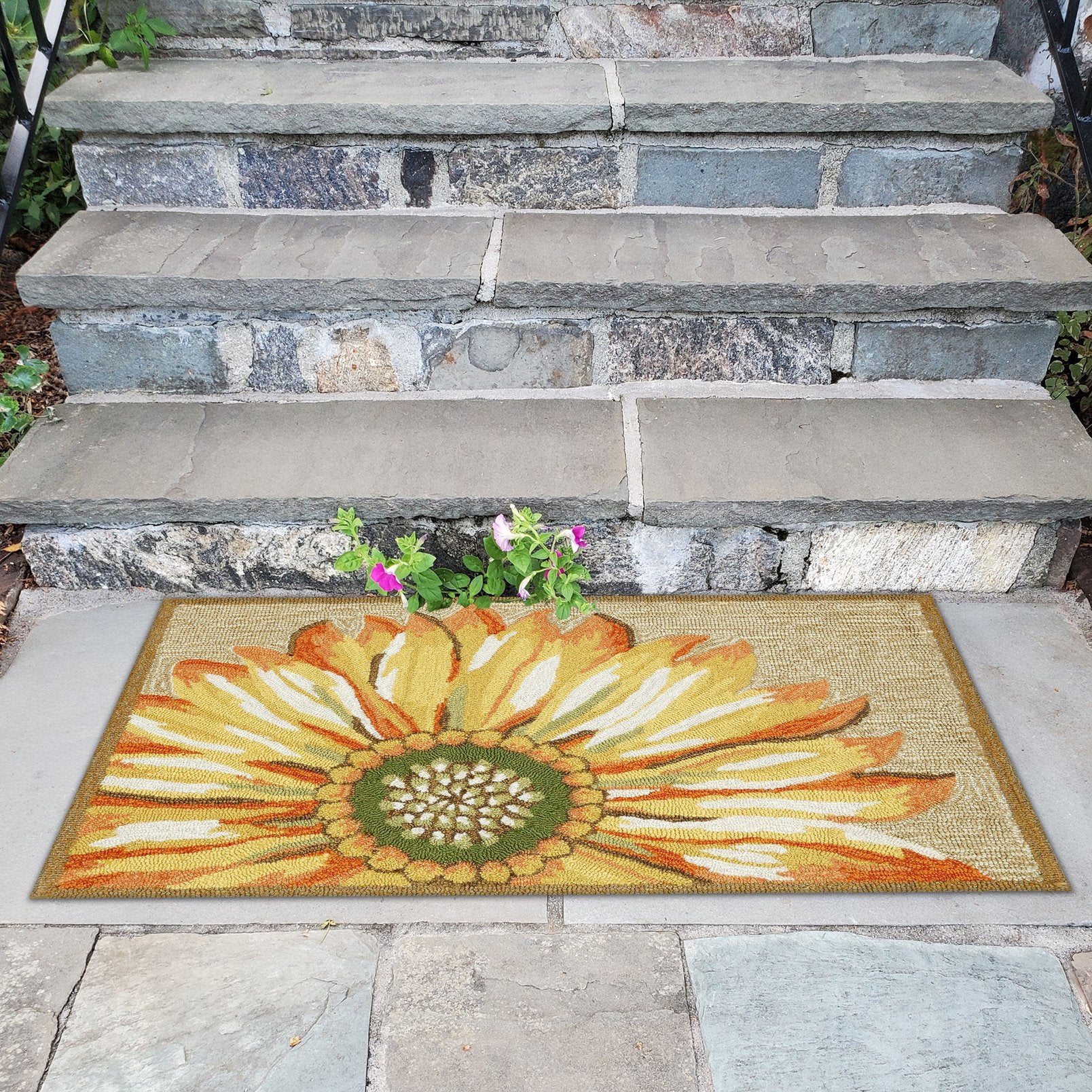 - This Transitional, botanical Country Sunflower doormat features a Decorative large sunflower with yellow, gold, pale green and ivory painterly petals on a neutral background Lodge Nature