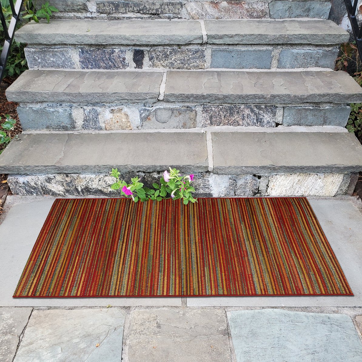 - A Decorative, dynamic, Graphic take on the Transitional, All-Purpose, All-Season Cabin, classic Striped rug, with rich tones of Multicolor hues