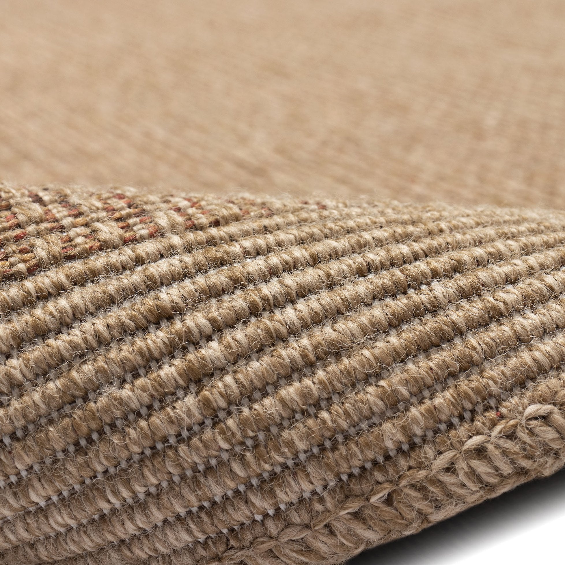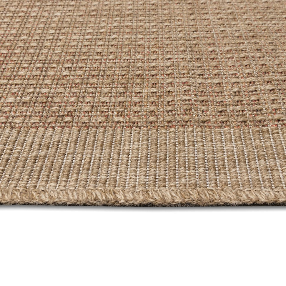 - Designed with a rustic tan Border with a Colorful Decorative Textured tweed center in terracotta