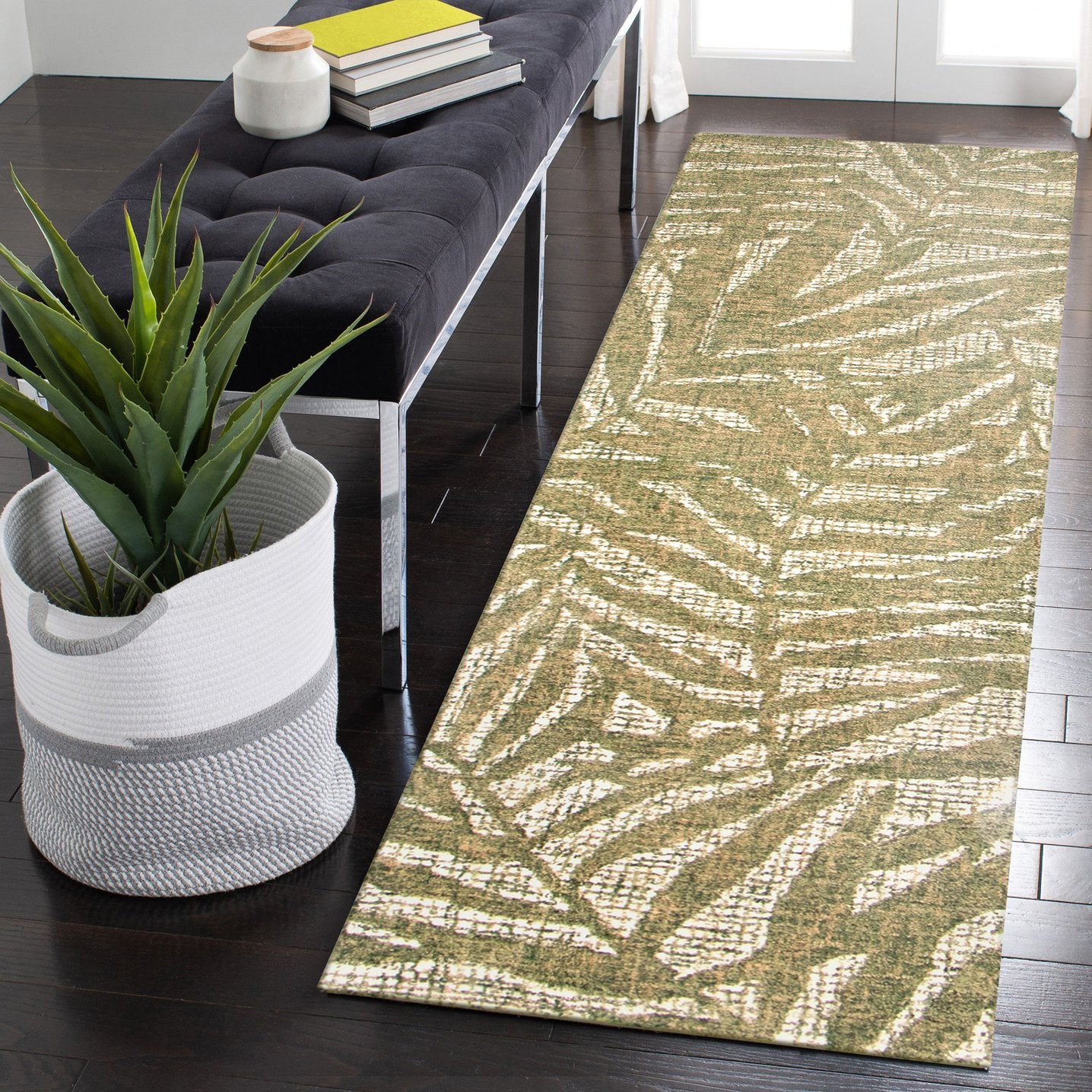 - A Transitional All-Purpose All-Season Casual olive Leaf design layered over a decorative global grid pattern