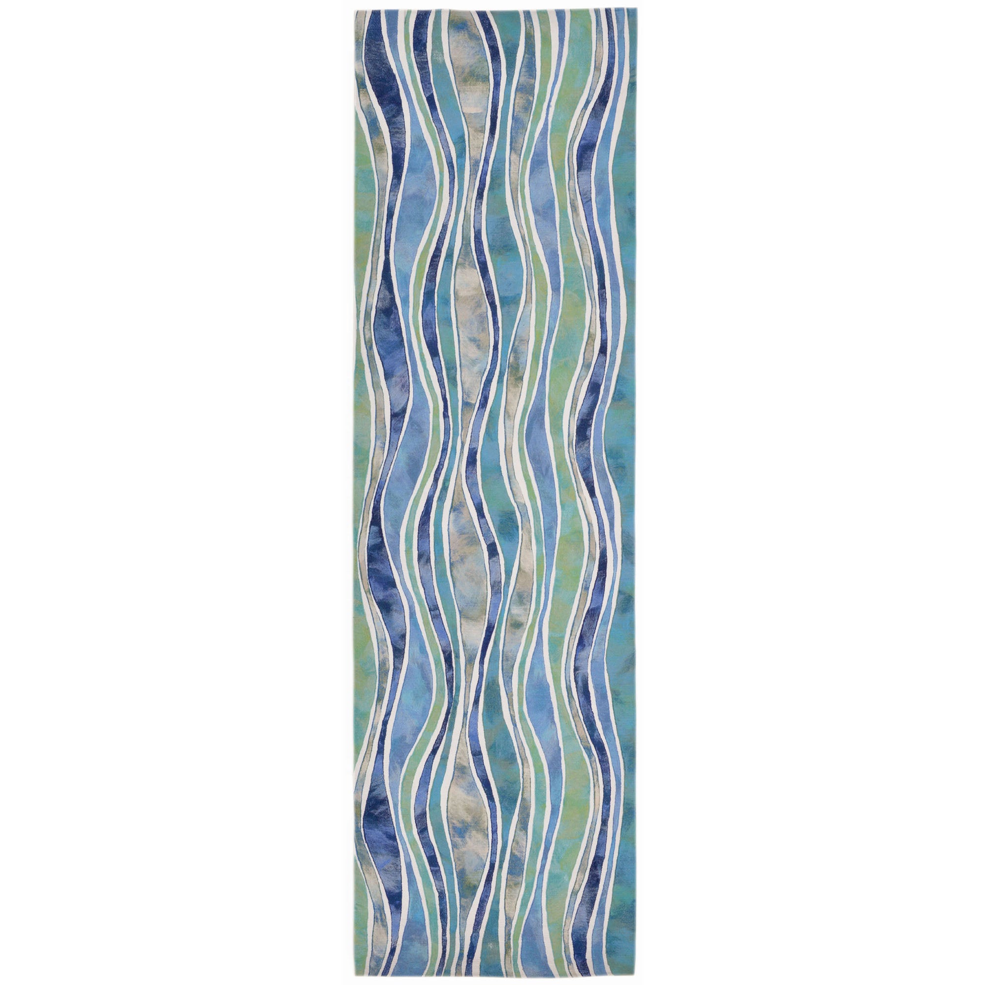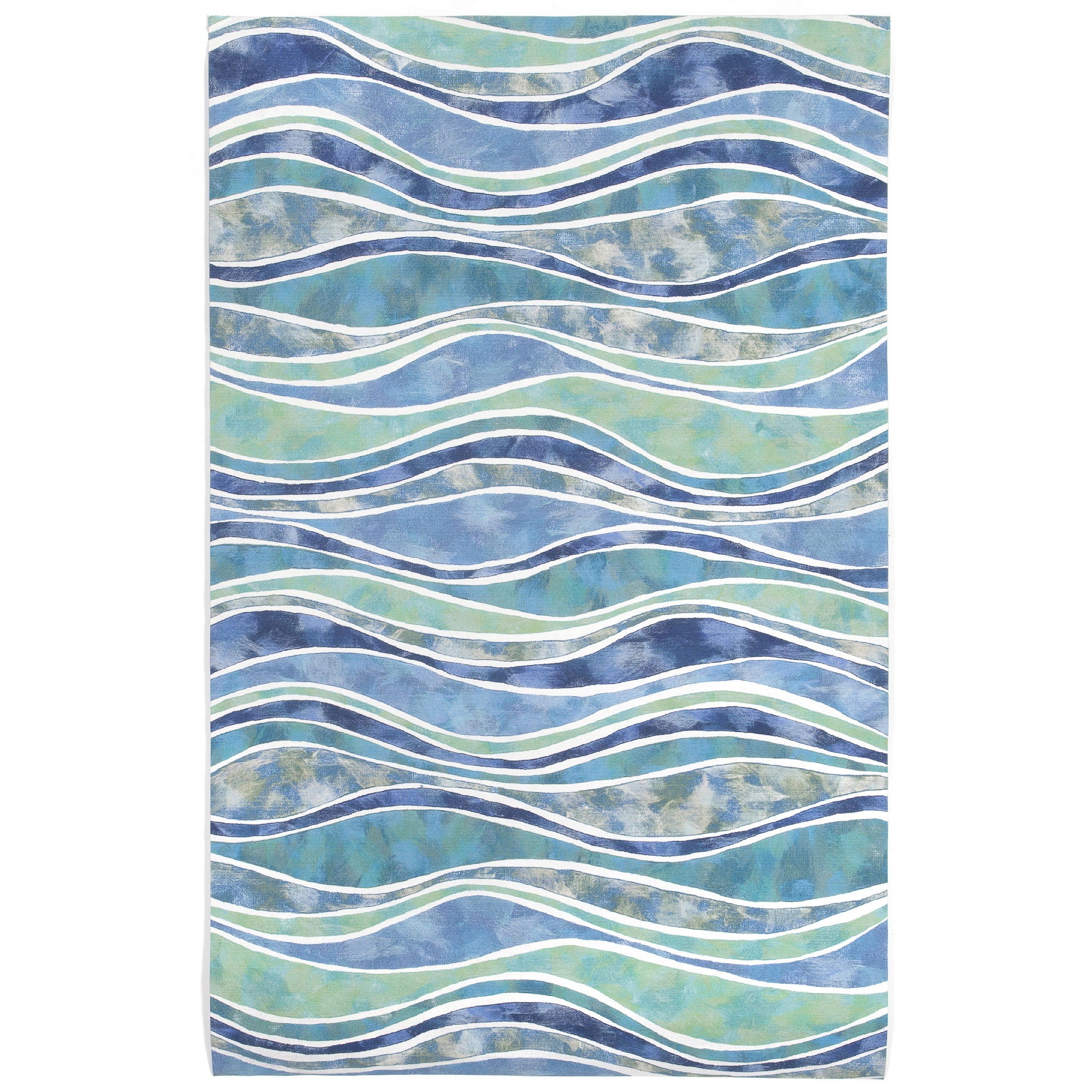 - This all-purpose, all-season, modern, coastal rug features a graphic, whimsical pattern of multicolored waves