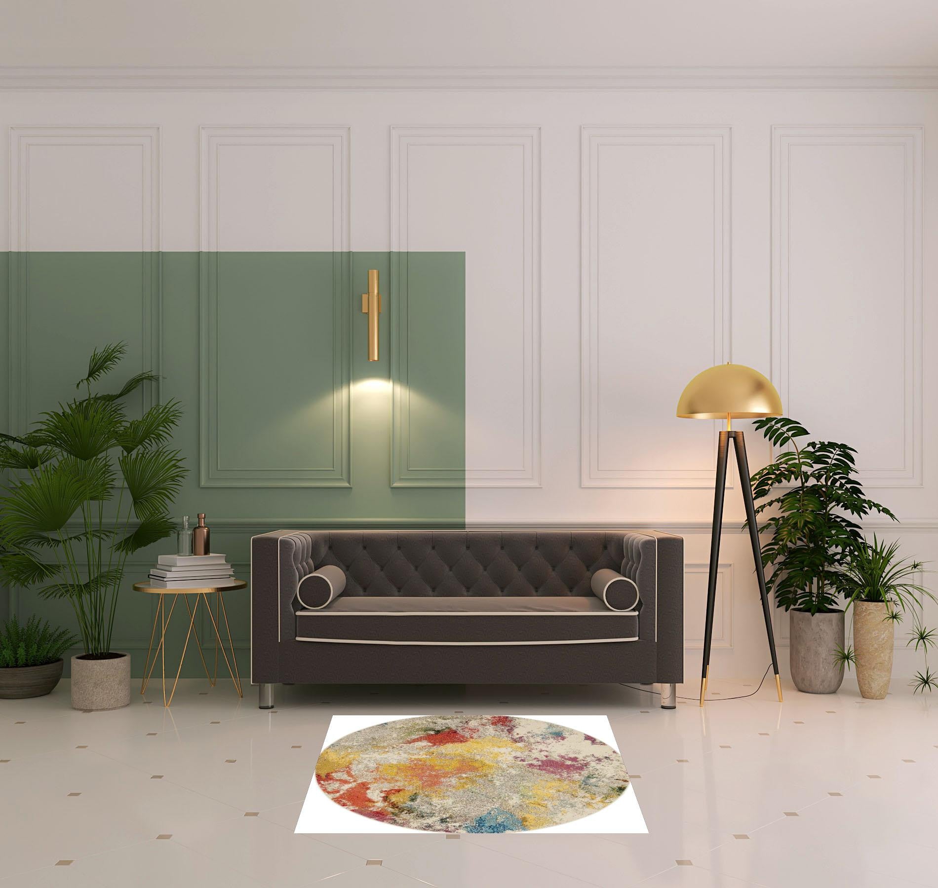 - Modern abstract rug adds artistic appeal to contemporary settings