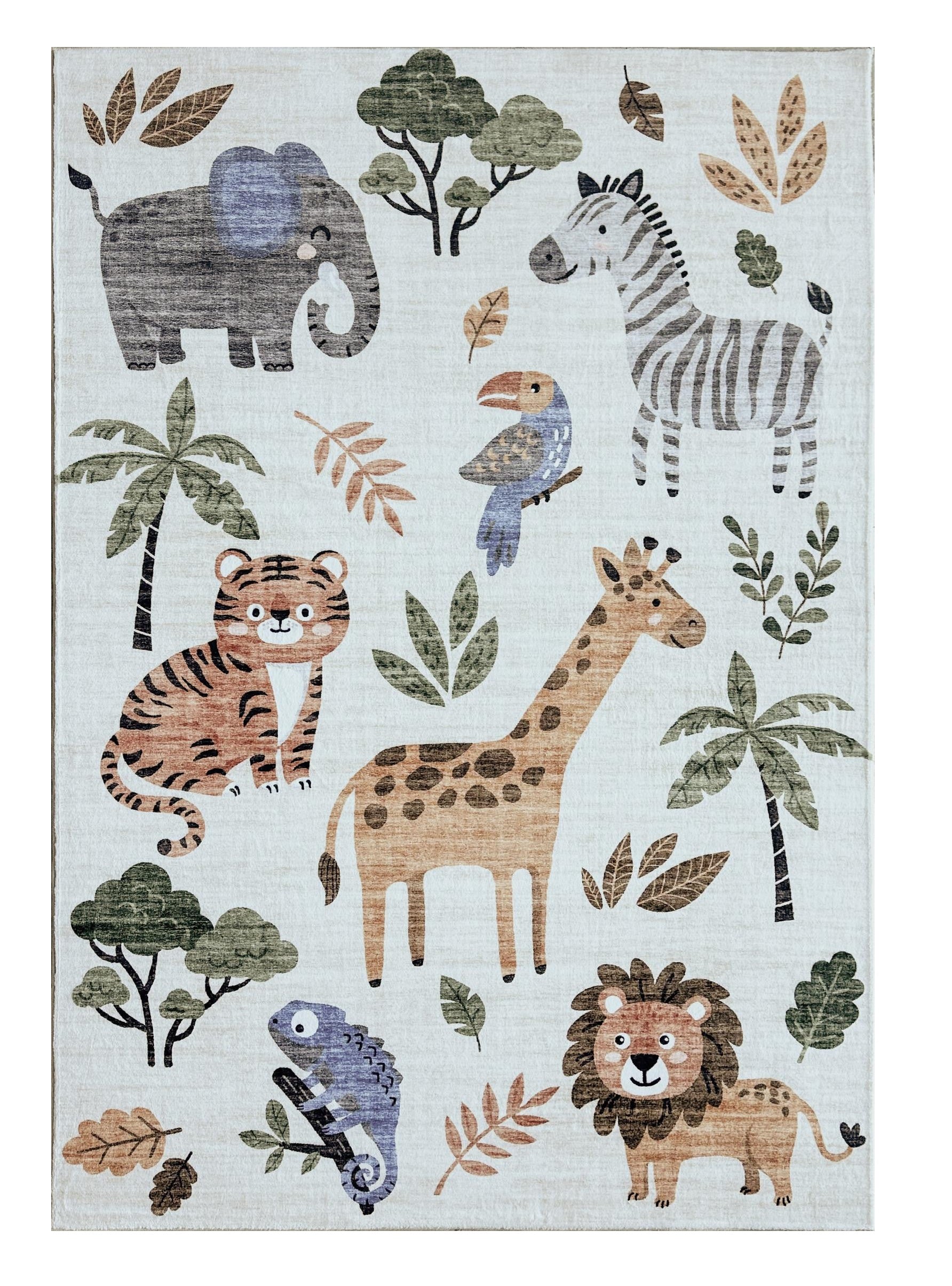 - Features a colorful zoo animals pattern that is ideal for nursery, child's bedroom, playroom, or den.