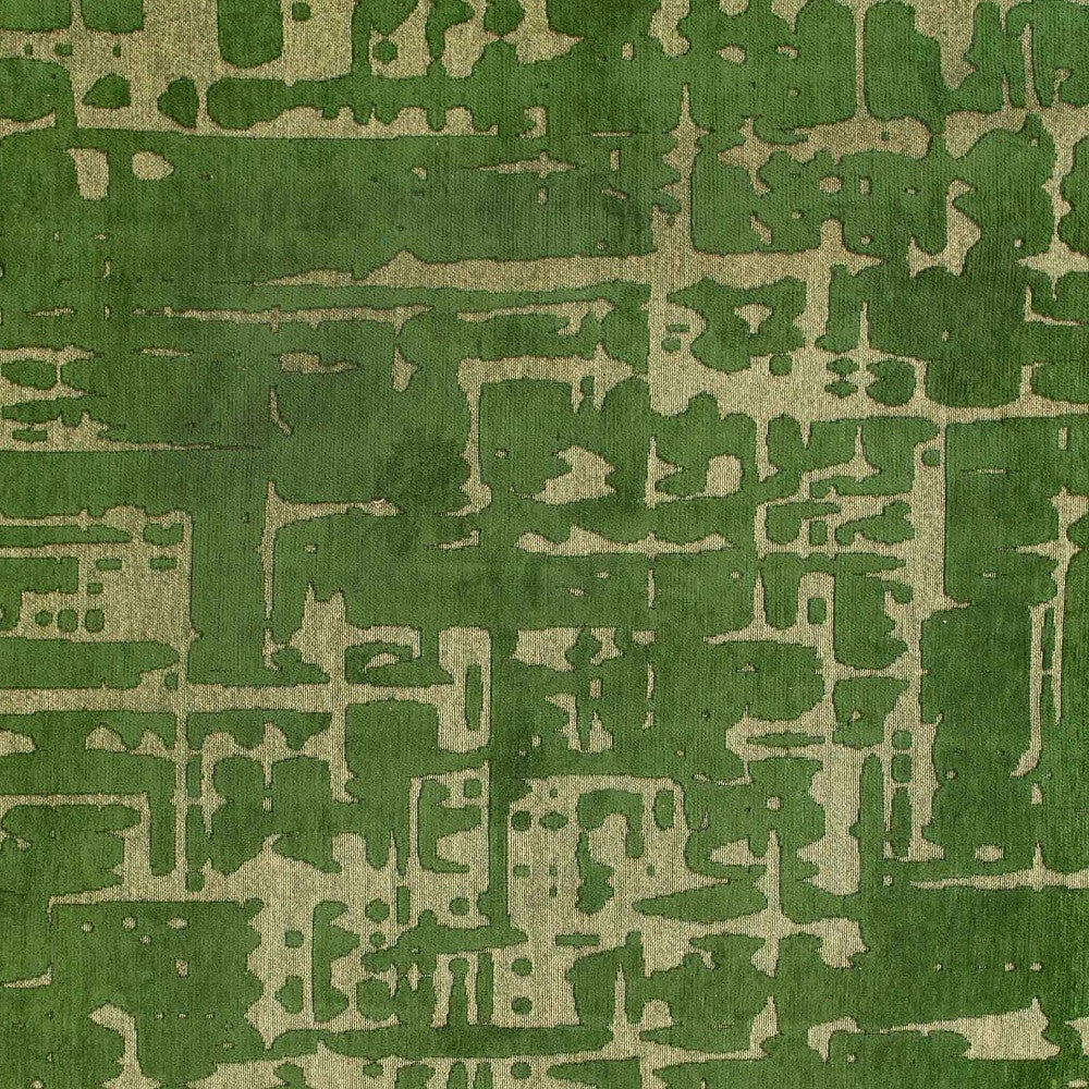 - Machine-made area rug with modern green design.