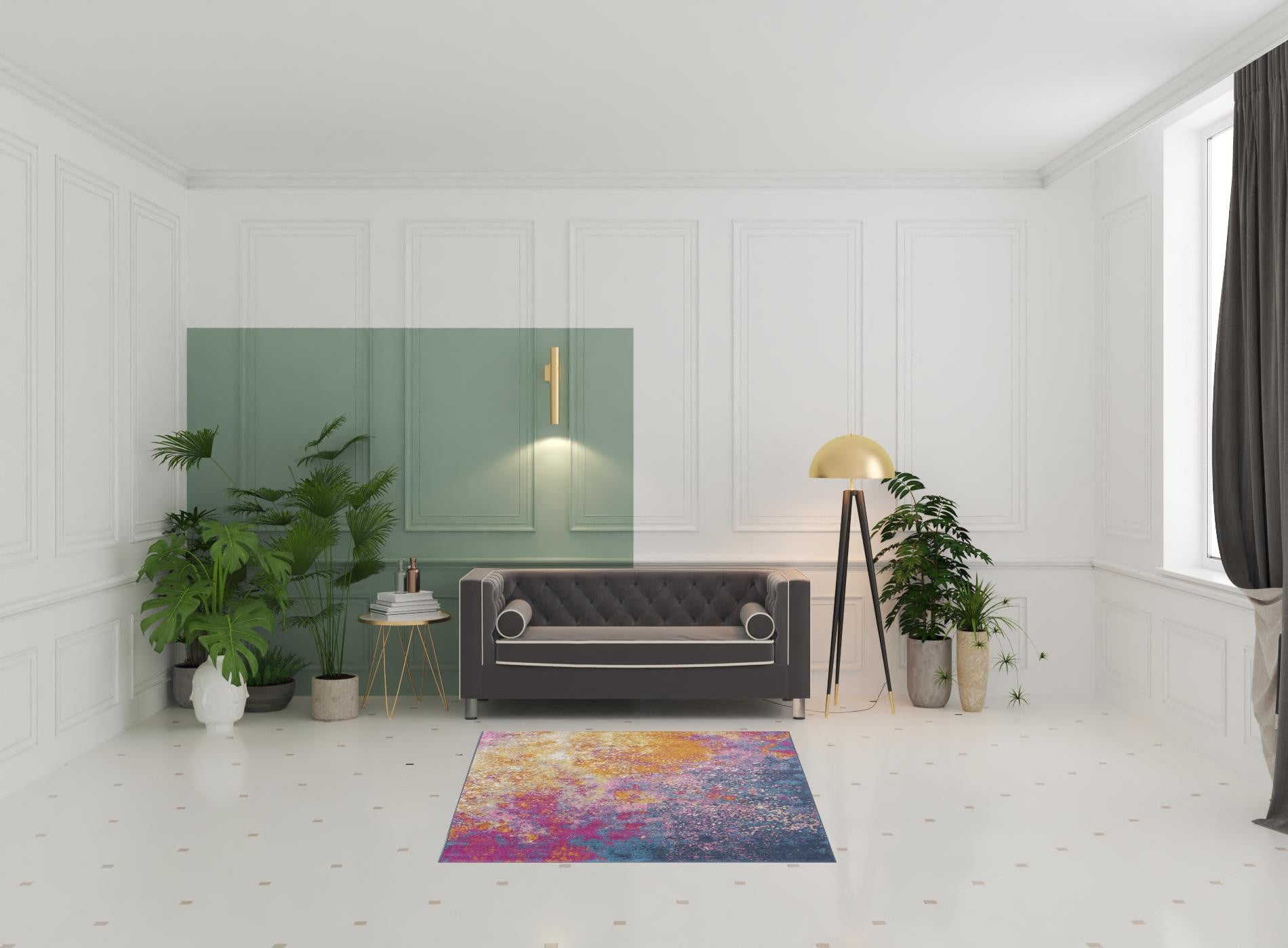 - Unique in shape, this square rug is a great way to accent your room and cover your floor.
