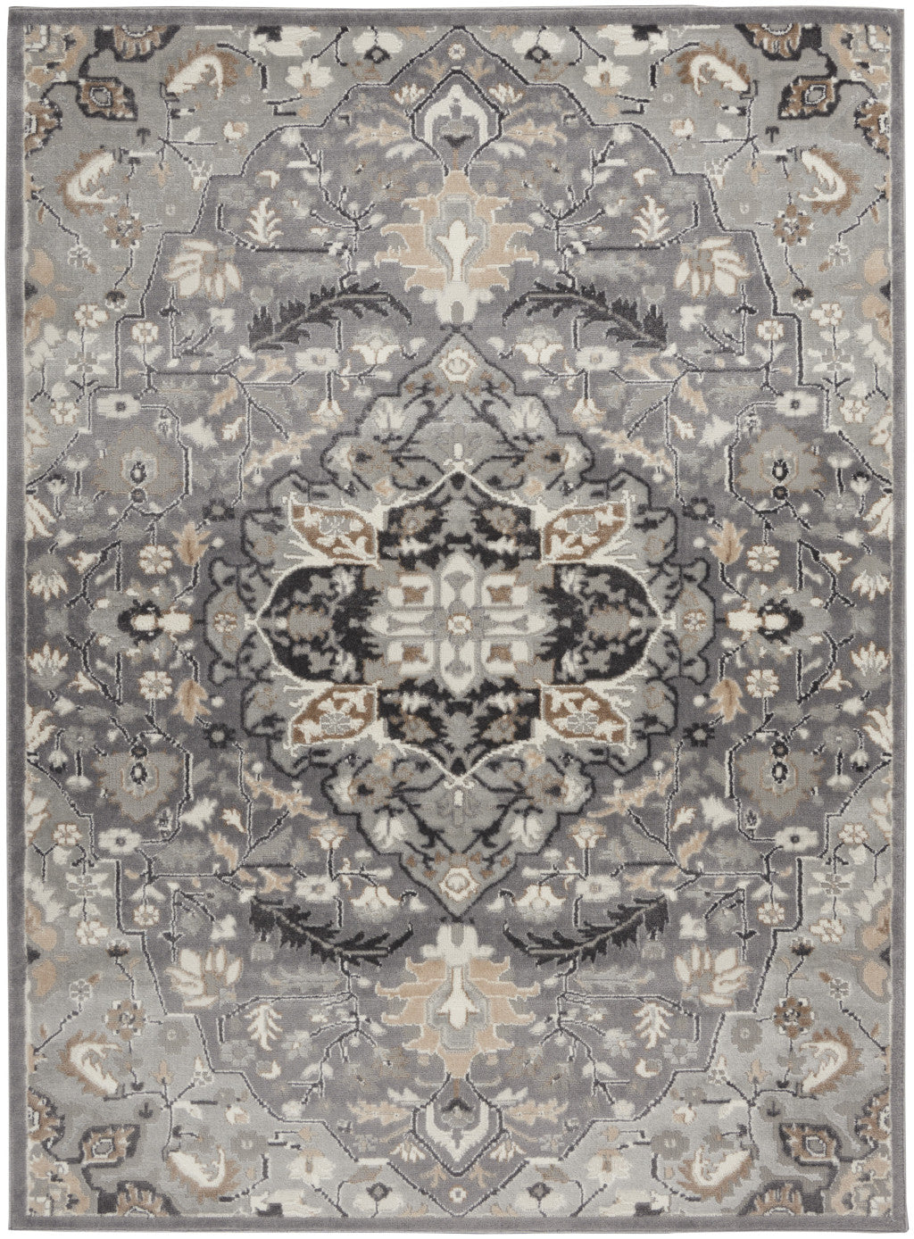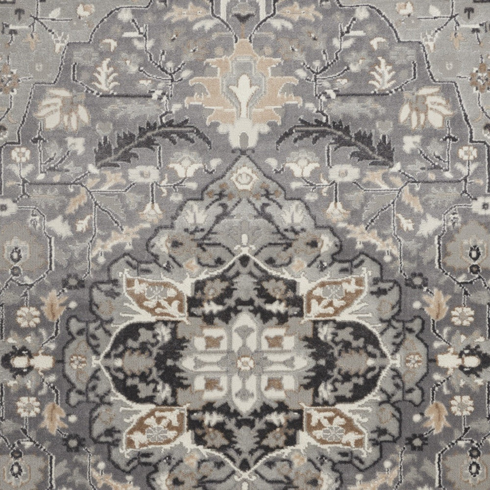 - machine made area rug in black and gray transitional style for the living room.