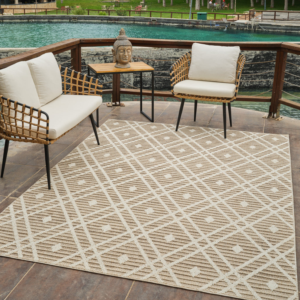- Suitable for use both indoors and outdoors this rug is ideal for deck, porch, patio, pool, kitchen, entrance foyer, and more.