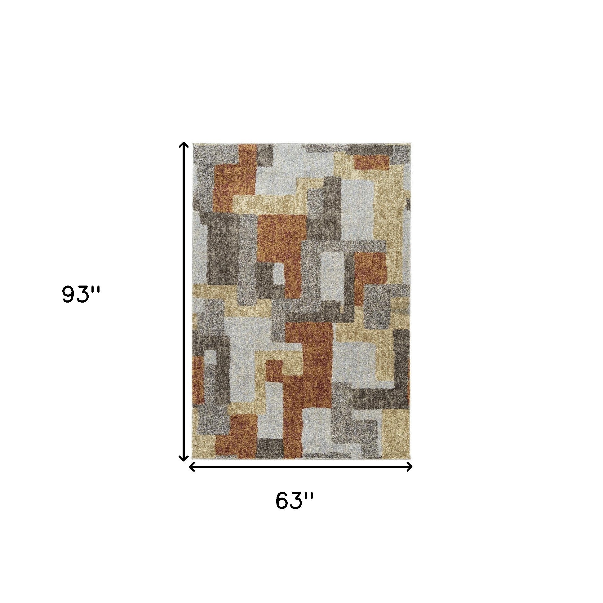 - Features an updated and modern geometric abstract design in shades of ivory, gray, silver, gold and brown.