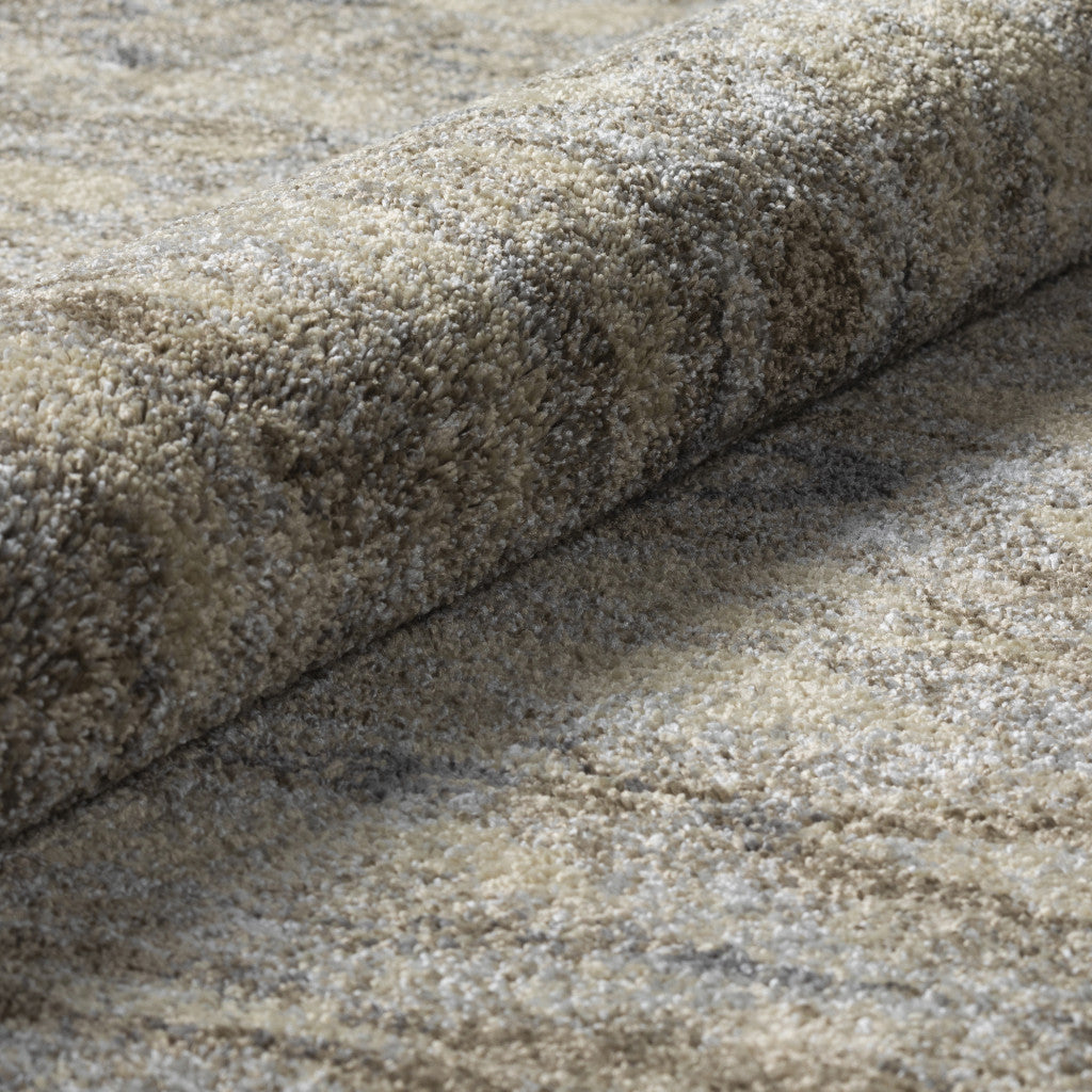 - Features an updated and modern geometric abstract Moroccan design in neutral shades of ivory, gray, silver, and taupe.