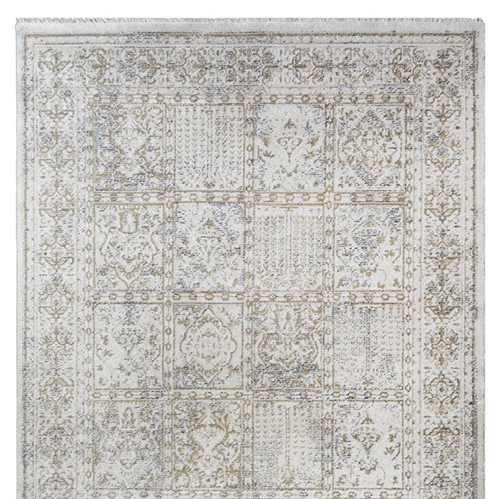 - Features a traditional oriental design with neutral coloration and a purposefully faded/worn appearance.