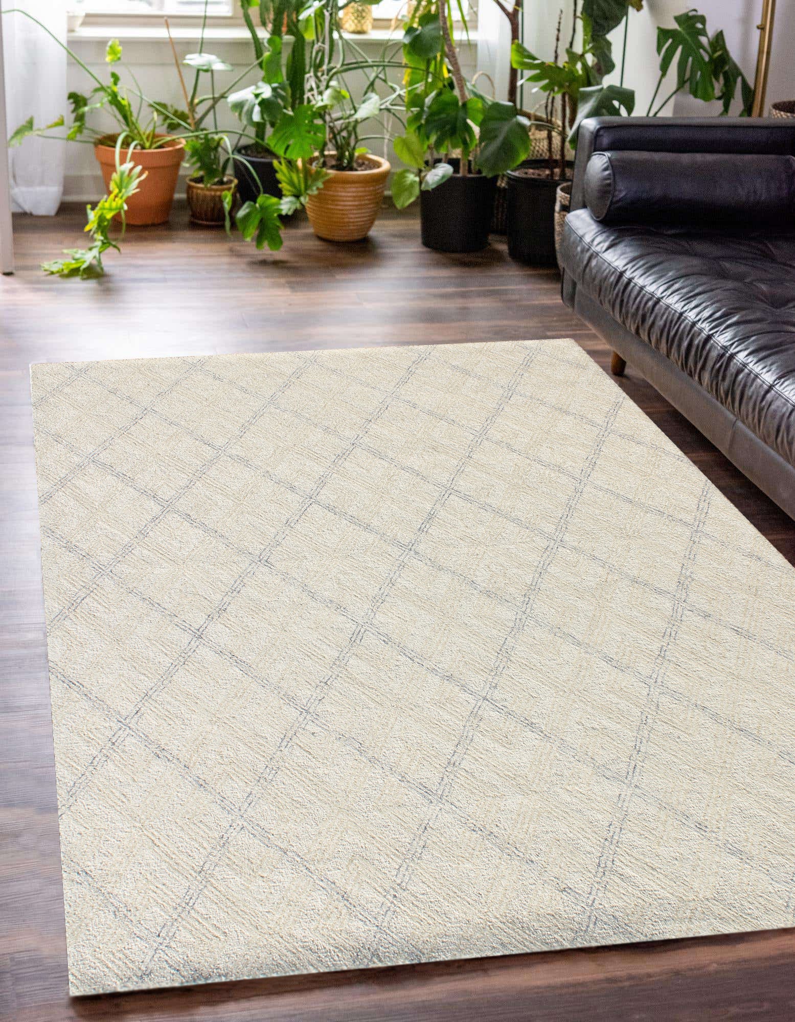 - Handmade wool area rug in elegant ivory for a formal touch.