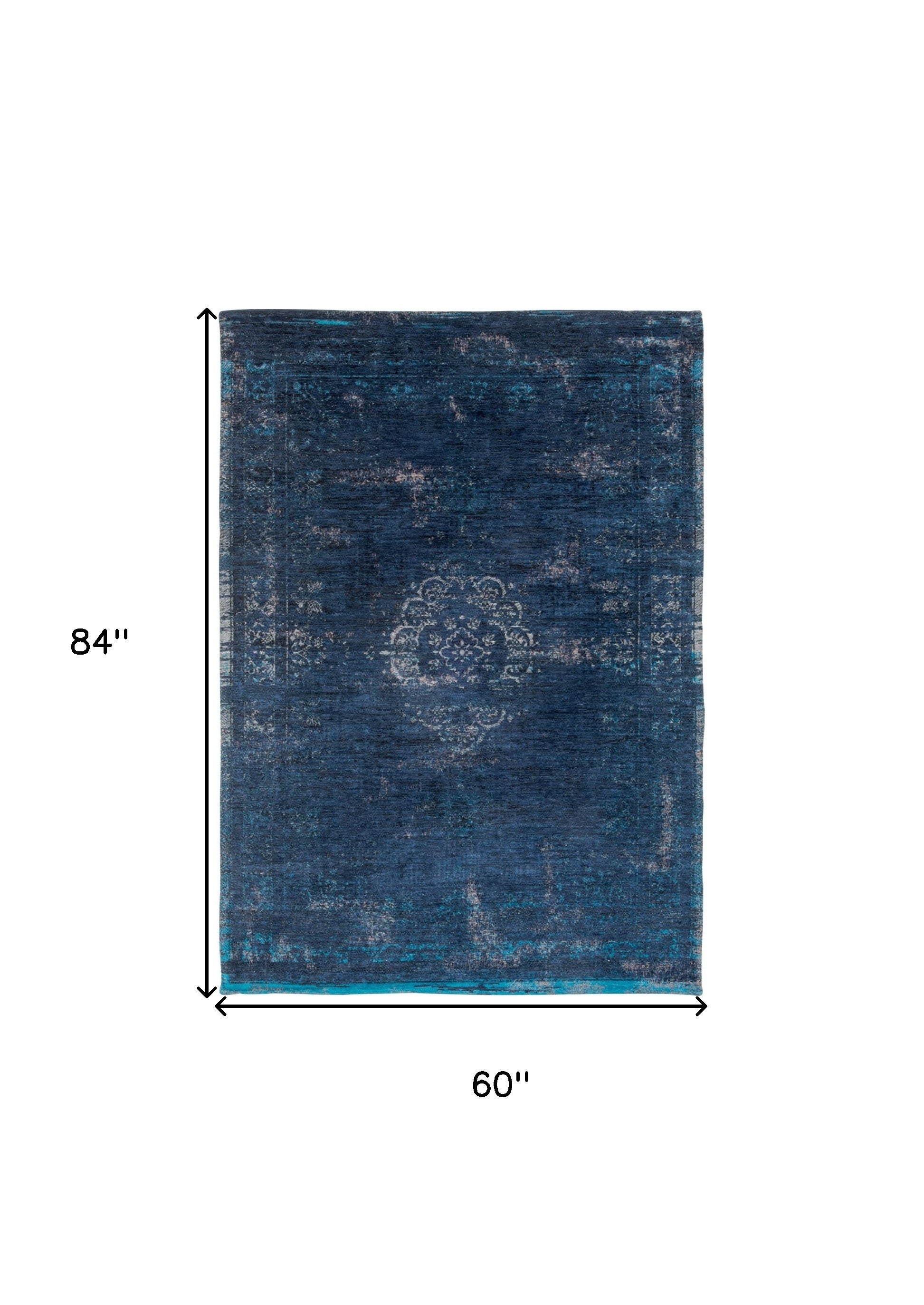 - Machine-made area rug in blue and gray.