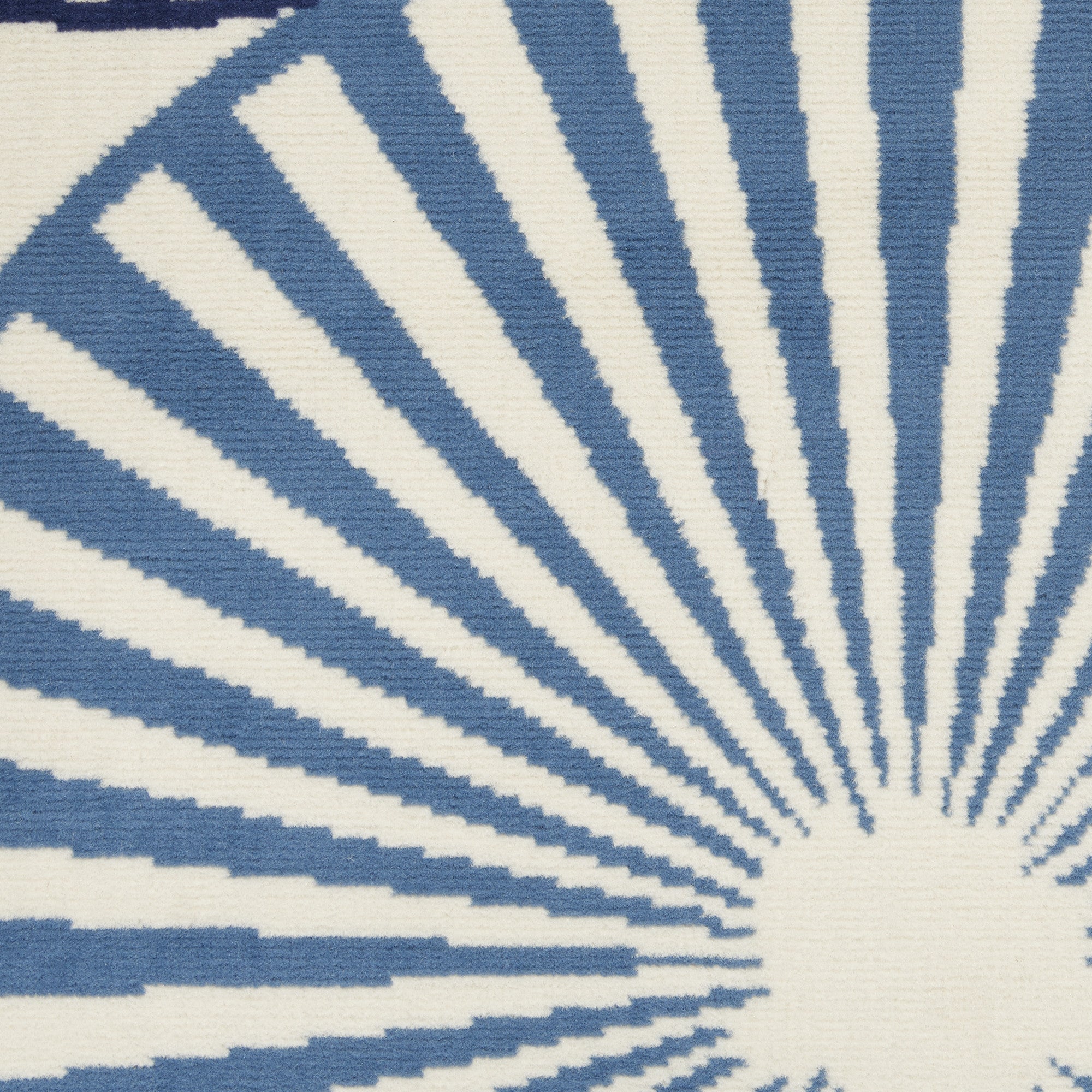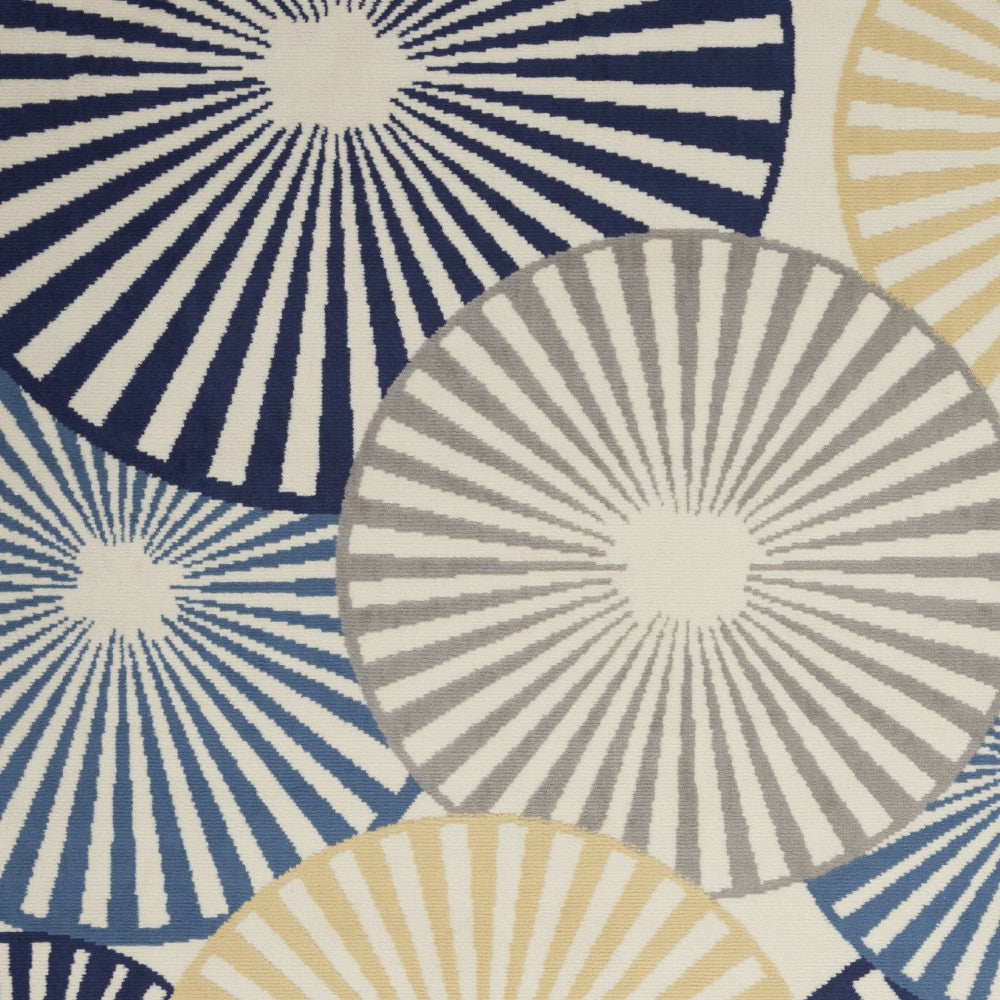 - Contemporary blue and ivory area rug with easy maintenance vacuum cleaning.