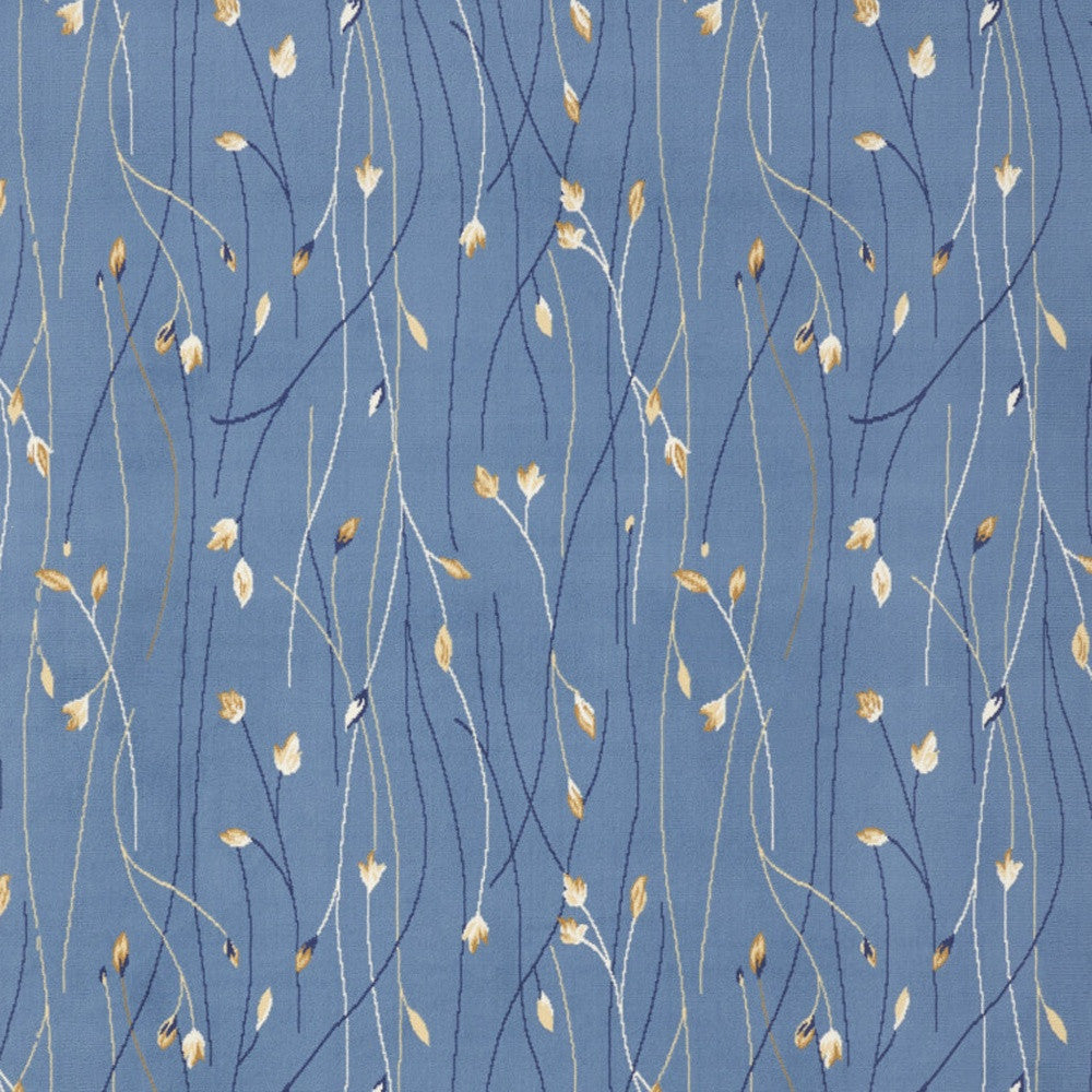 - Easy-care machine-made area rug in contemporary blue and beige colors.