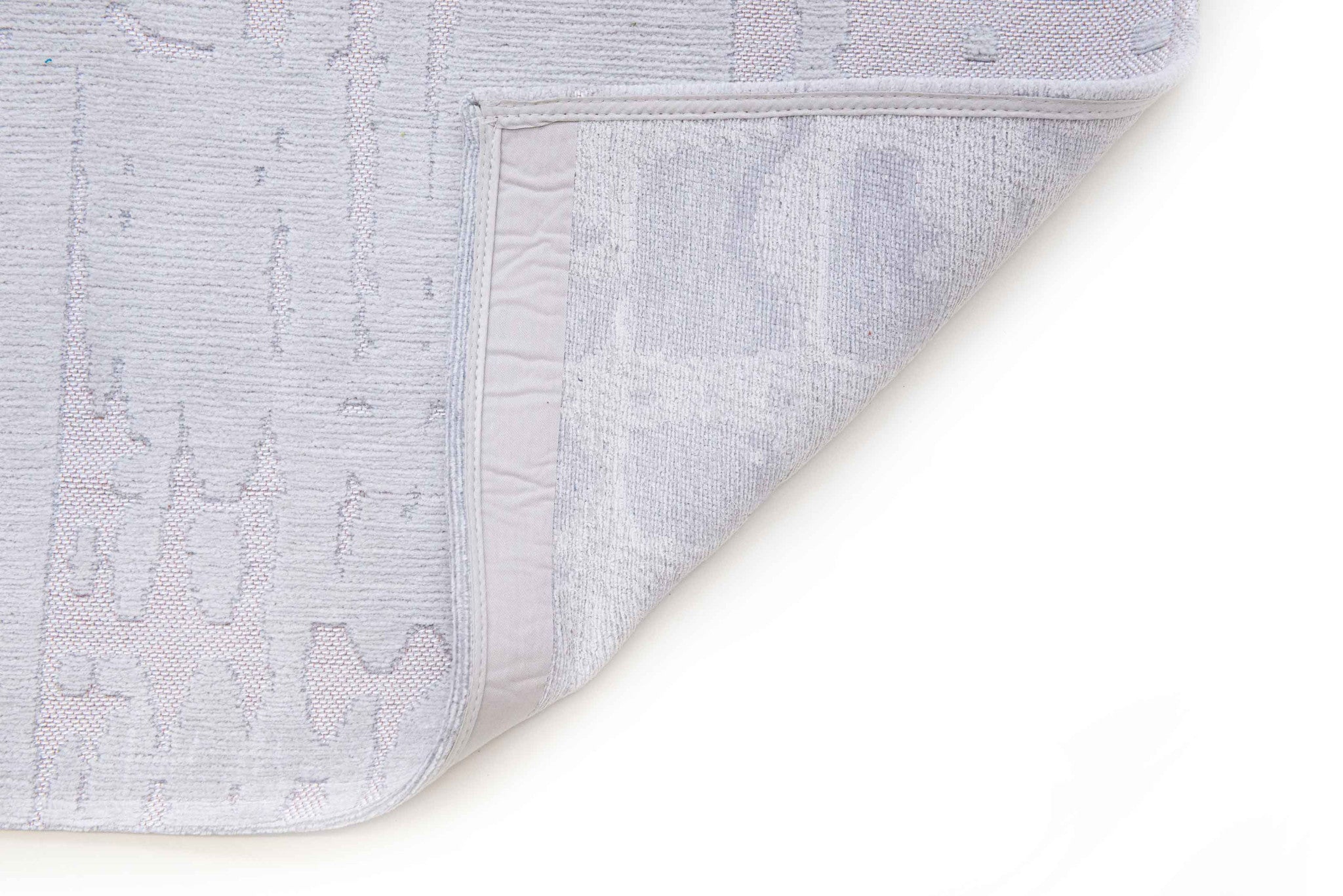 - Modern white area rug with non-slip backing.