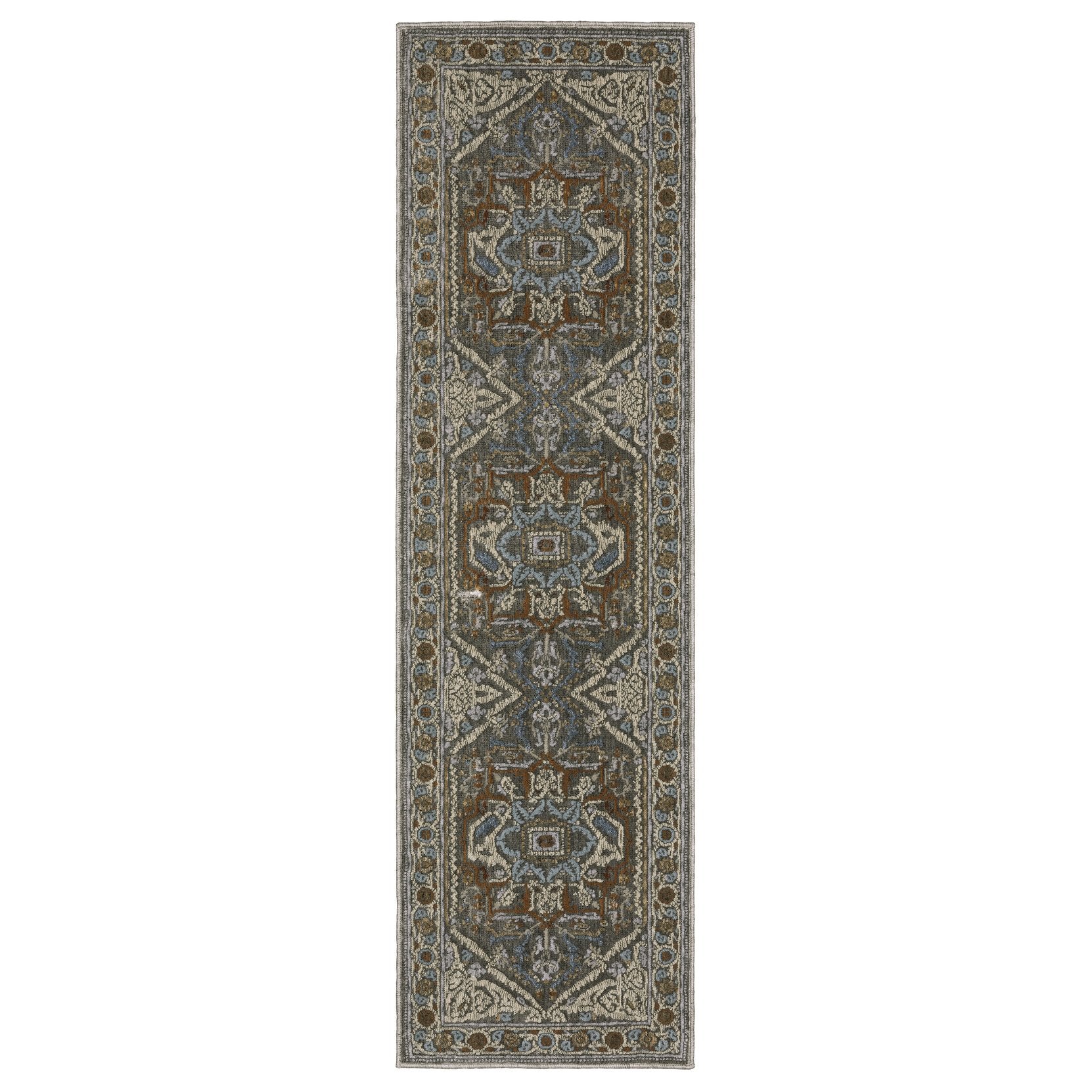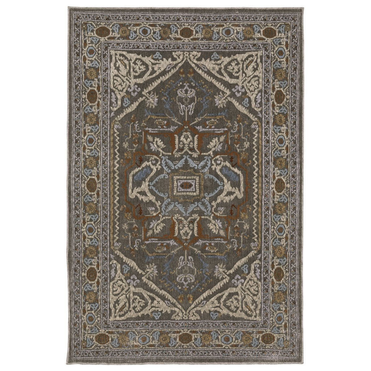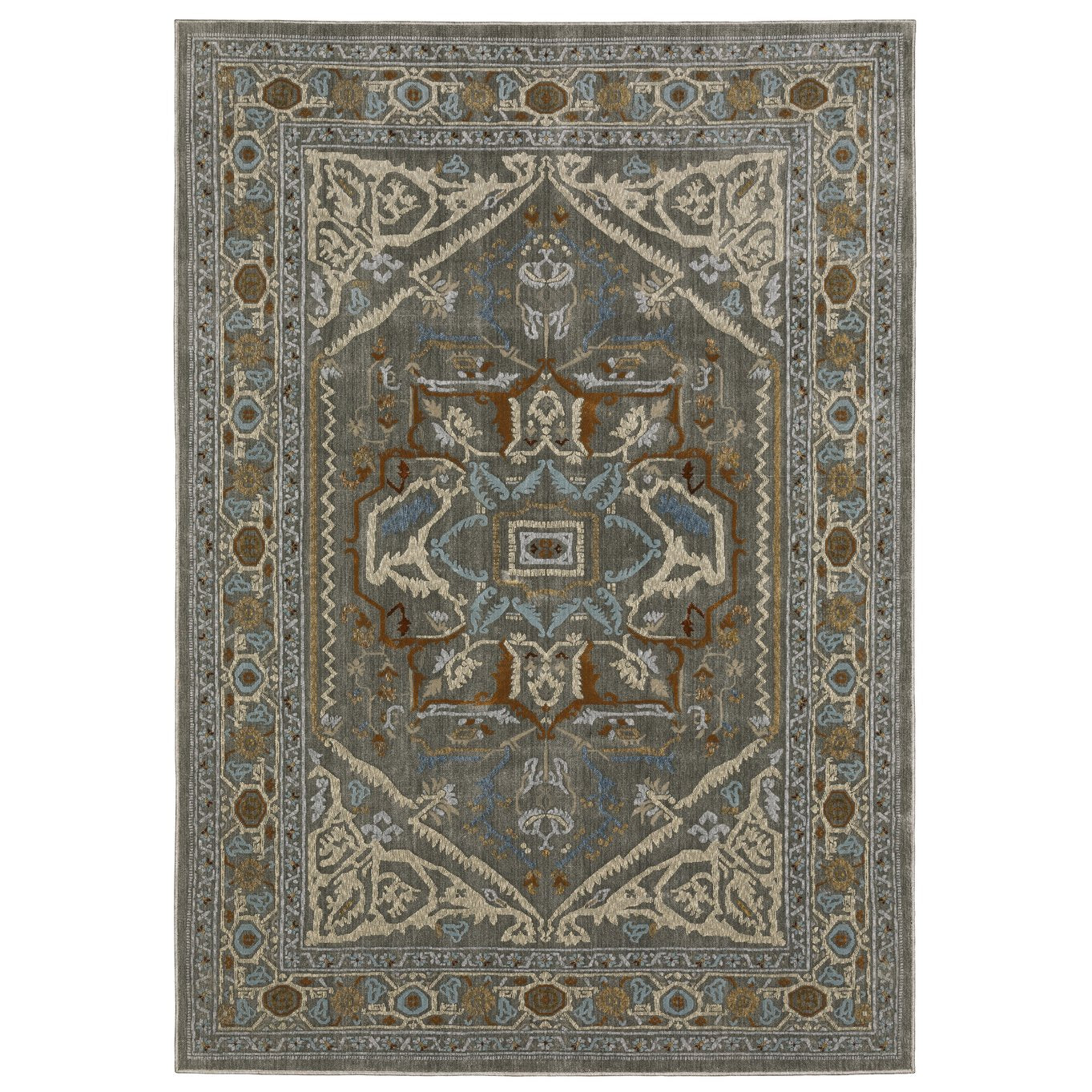 - Rug color include shades of grey, blue, rust, beige, gold, ivory