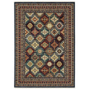 - Rug colors include shades of navy, orange, rust, blue, sage, gold, and beige