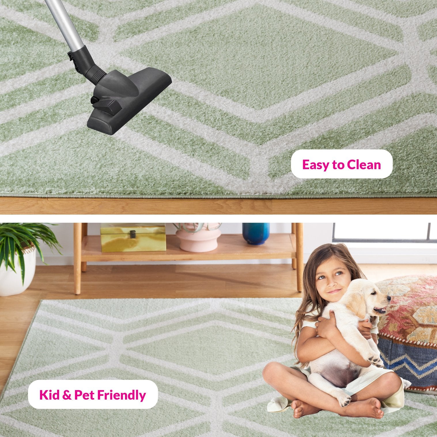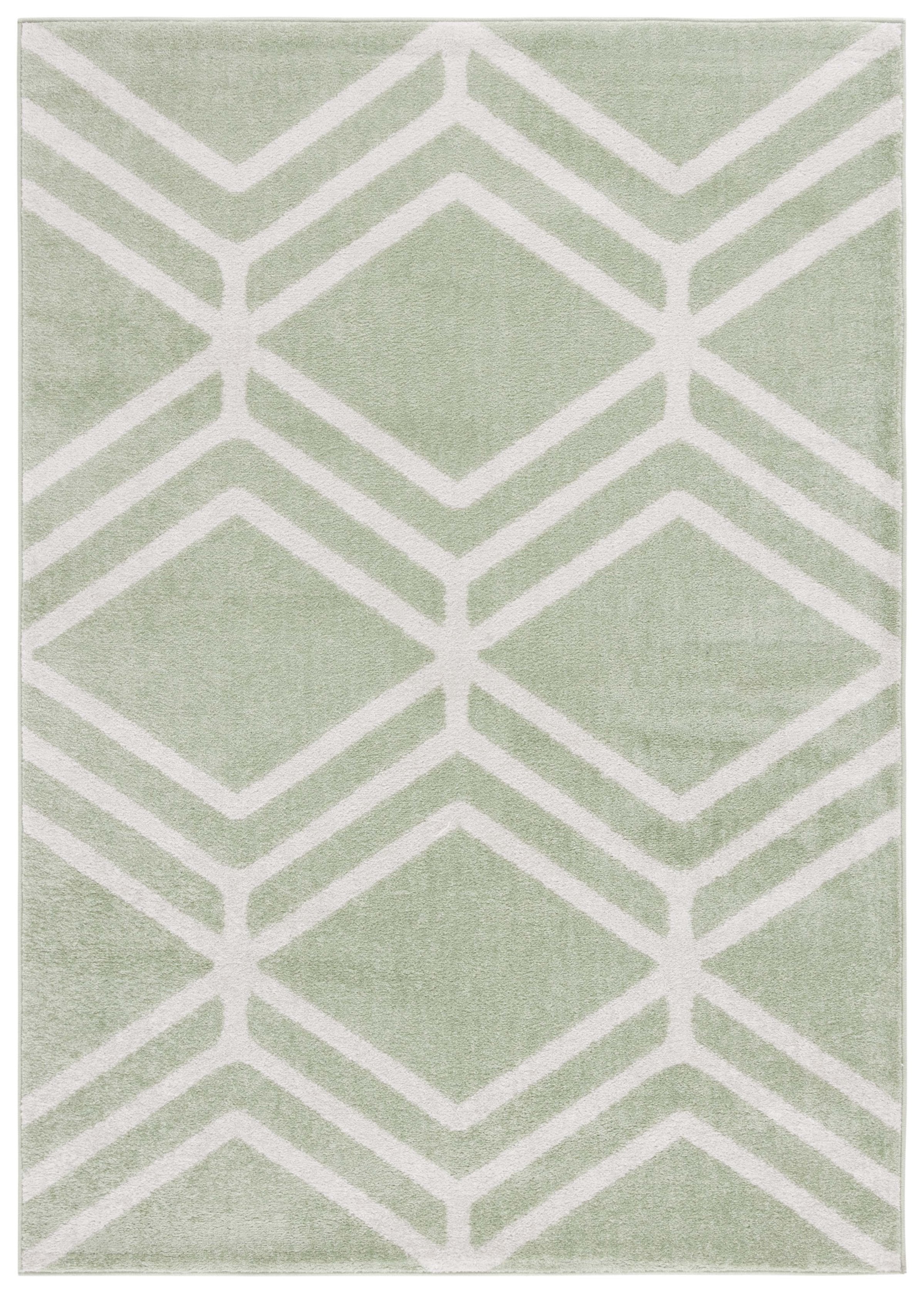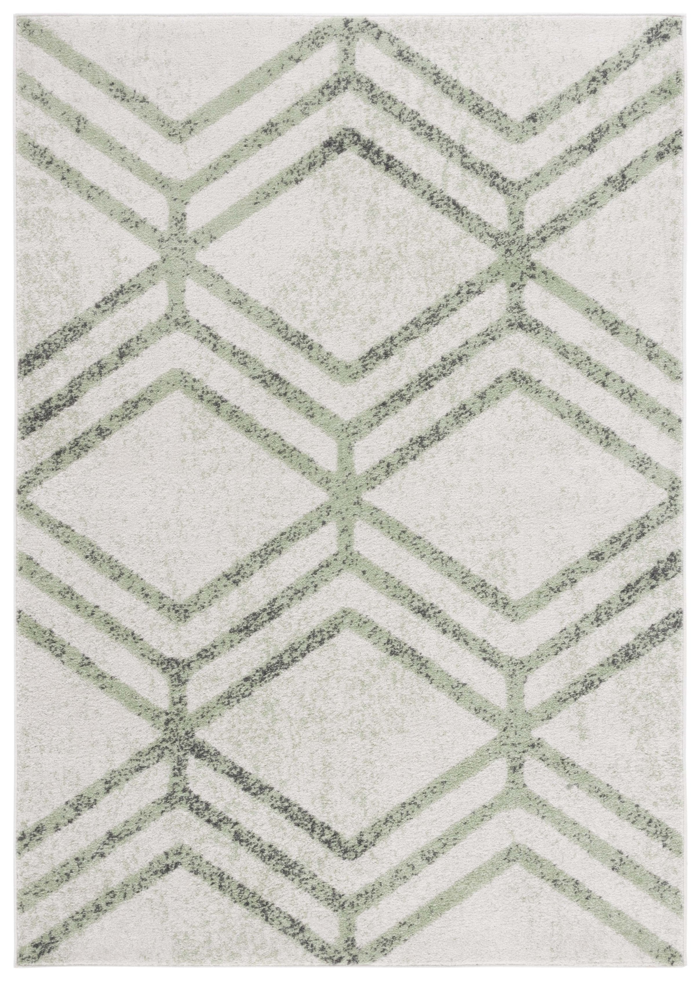 - Elevate your living space with this sleek 3' x 5' small rectangle area rug, expertly crafted in Turkey using a power-loomed technique for unmatched precision and durability. The modern ivory and sage color palette exudes sophistication, while the geo