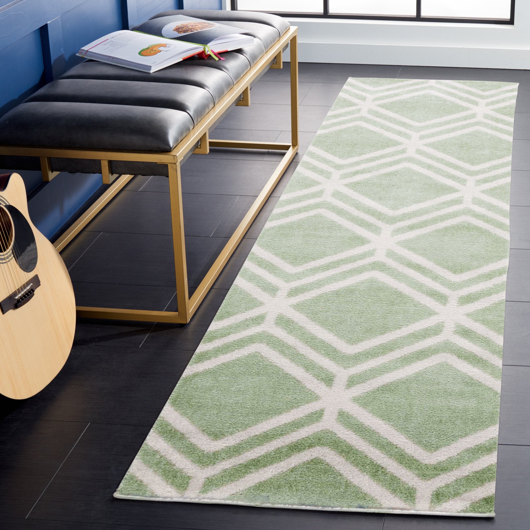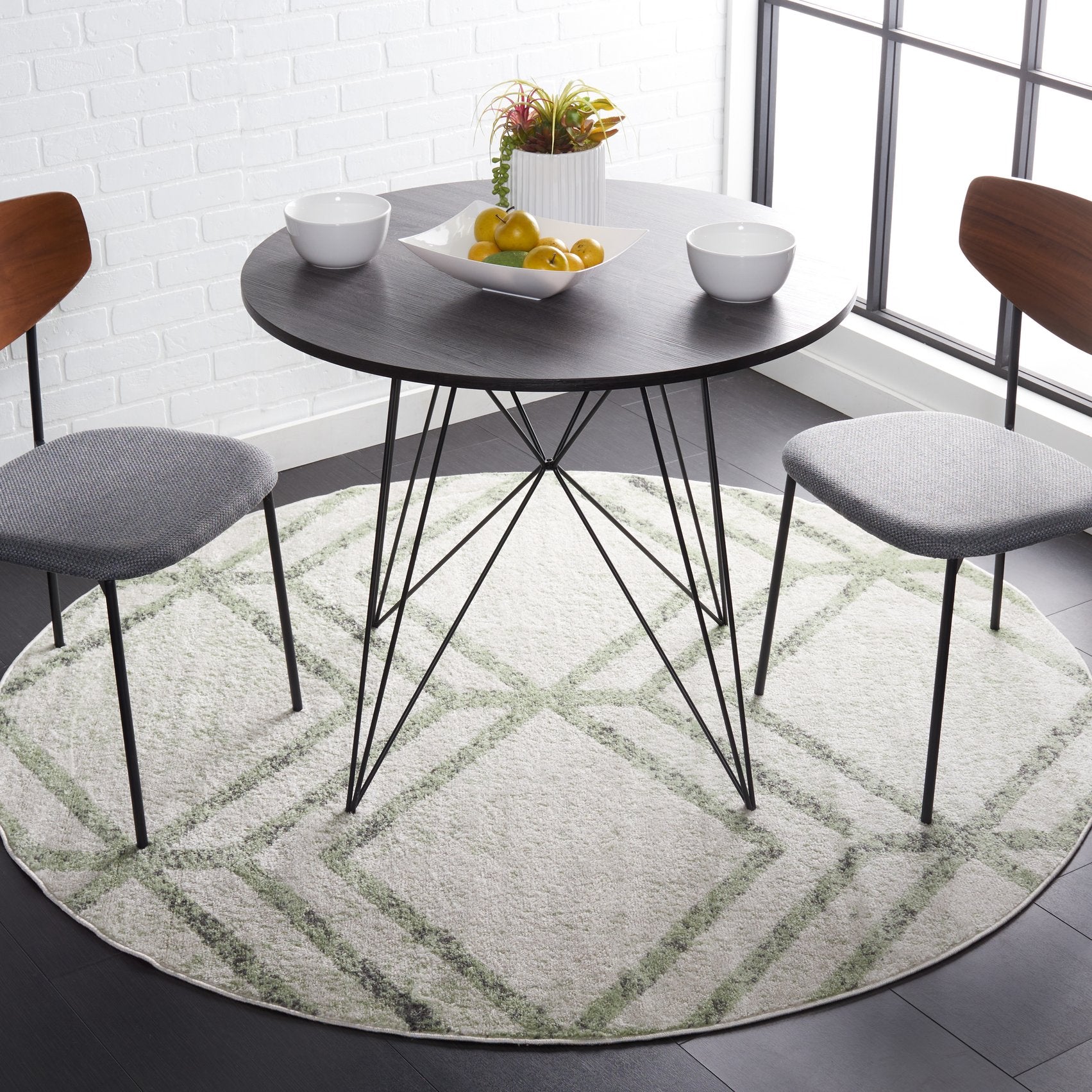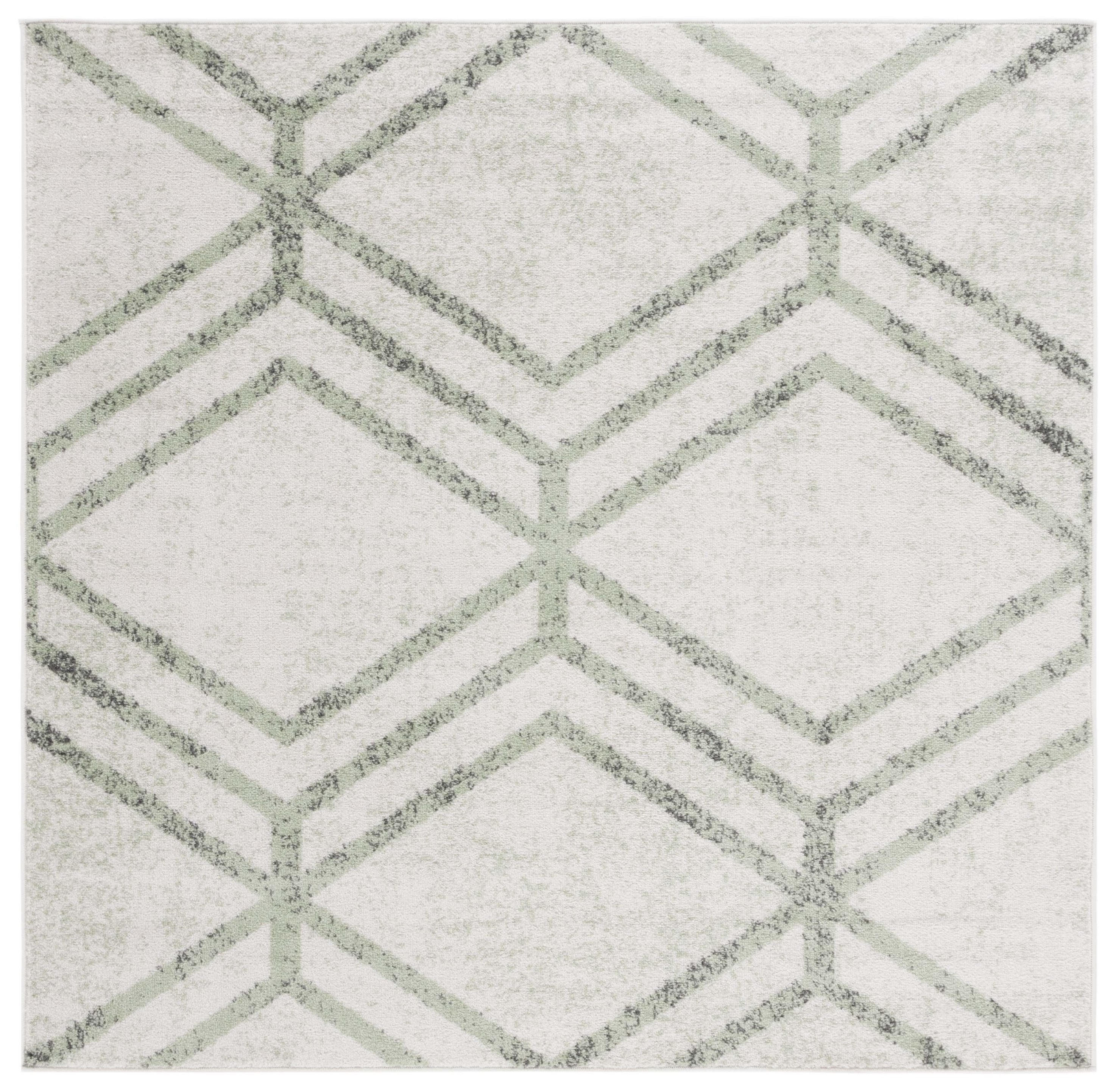 - Elevate your living space with this sleek 3' x 5' small rectangle area rug, expertly crafted in Turkey using a power-loomed technique for unmatched precision and durability. The modern ivory and sage color palette exudes sophistication, while the geo