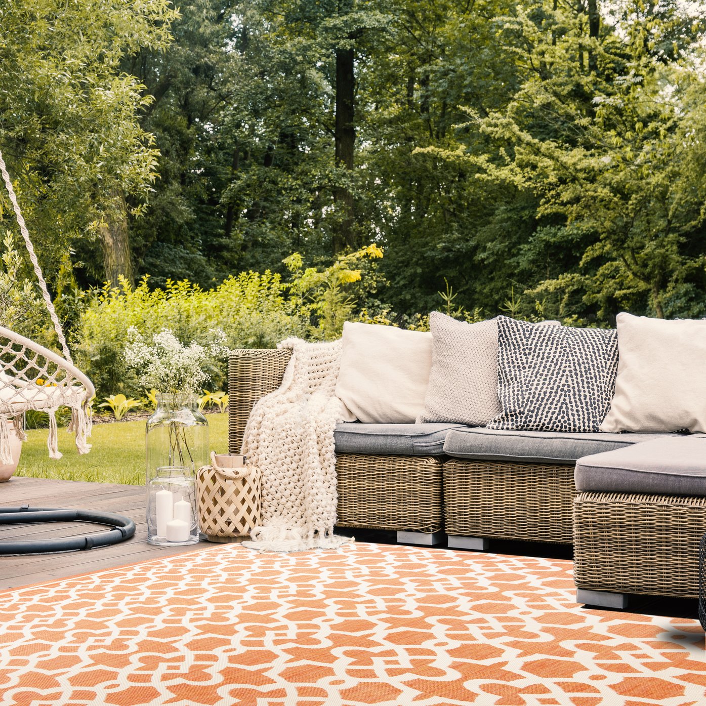 - hetic yarns make for a durable outdoor floor covering. The perfect choice to withstand the elements while looking great season after season.