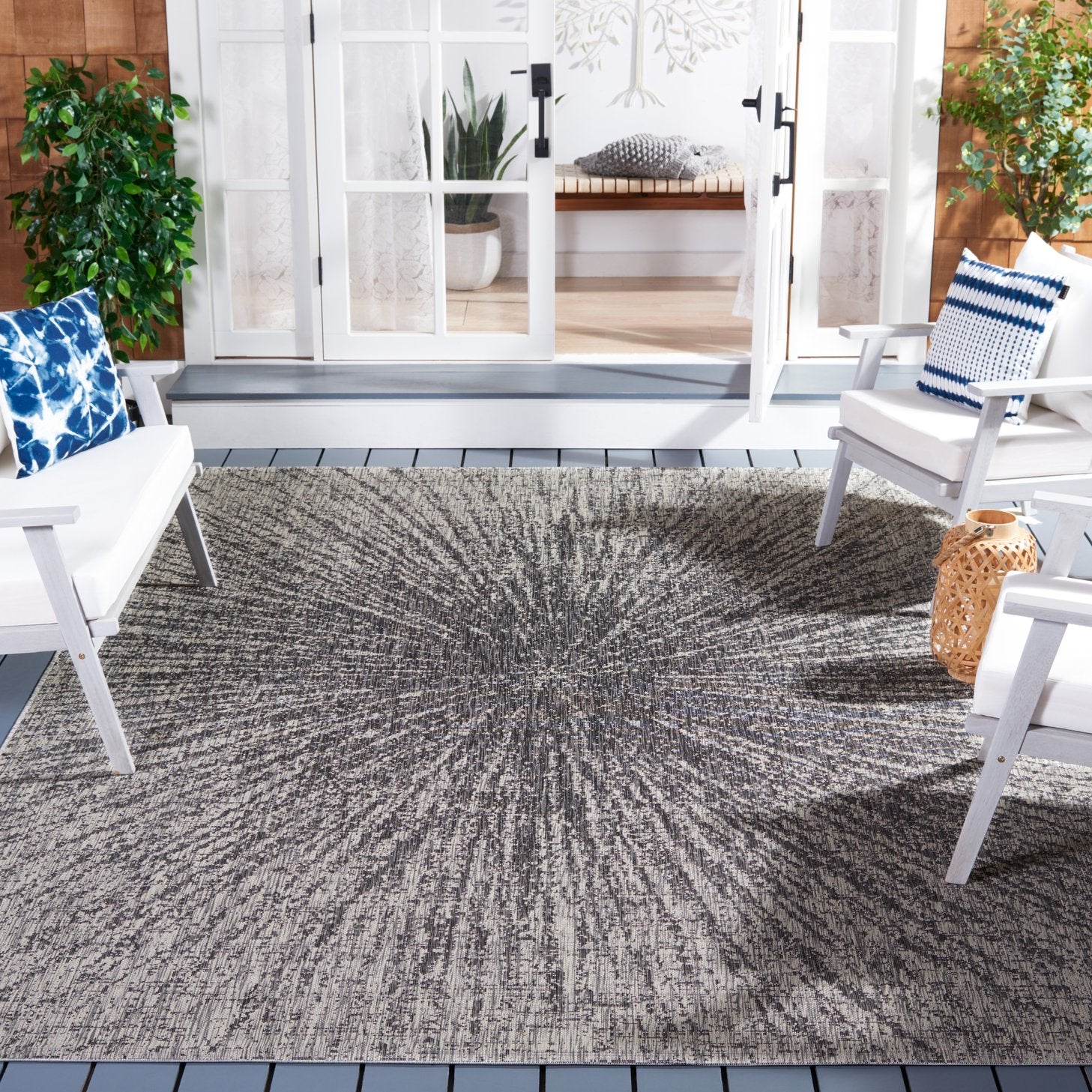 - Safavieh's Courtyard collection was created for today's indoor/outdoor lifestyle. These beautiful but practical rugs take outdoor decorating to the next level with new designs in fashion-forward colors, and patterns from classic to contemporary. Made
