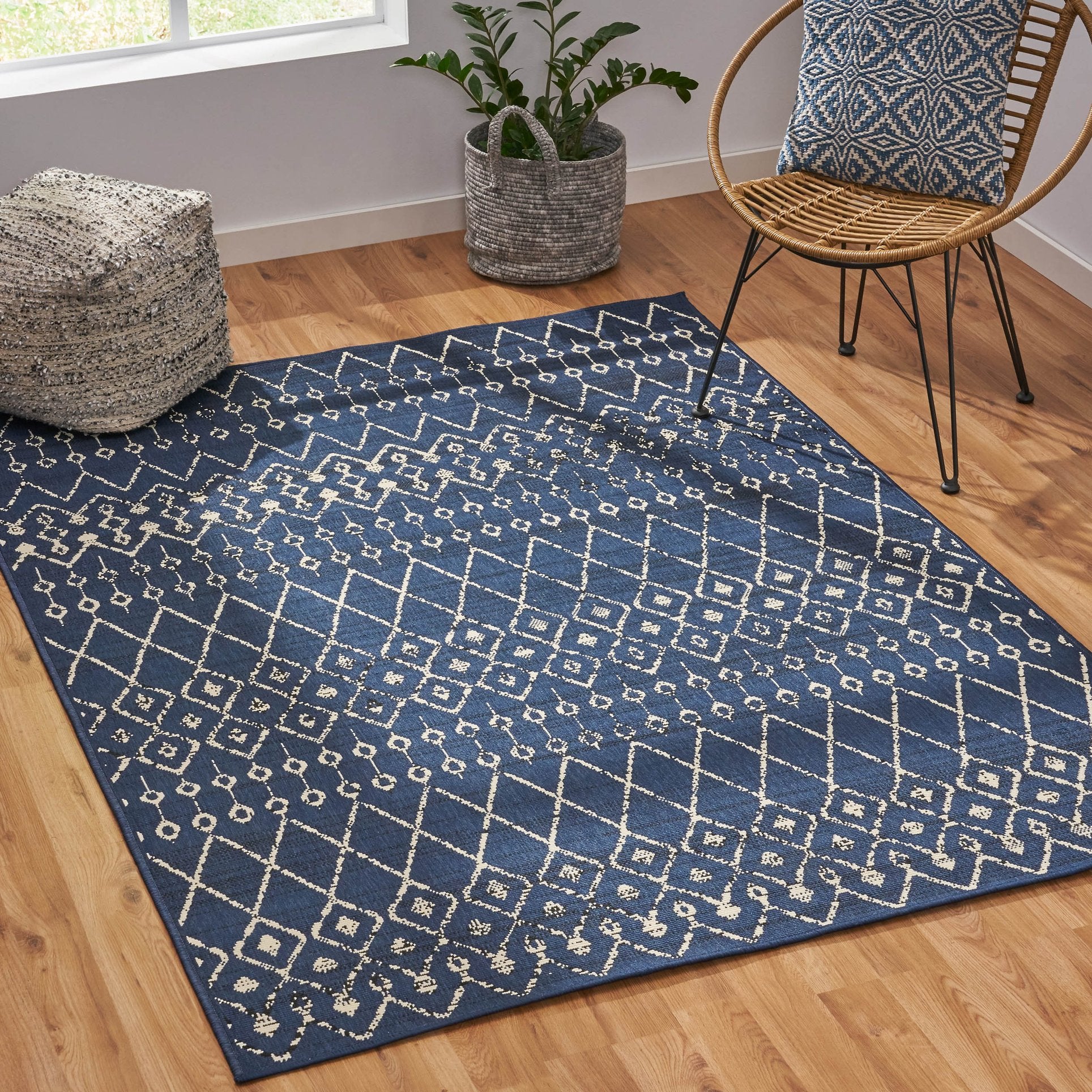 Bring warmth and modern style to any room with this navy and ivory area rug crafted for everyday living. Durable polypropylene construction and a low 4 mm pile make it easy to maintain while providing soft underfoot comfort. Ideal for living rooms, bedrooms, or dining areas, the rug offers a classic look that complements a variety of decor styles.