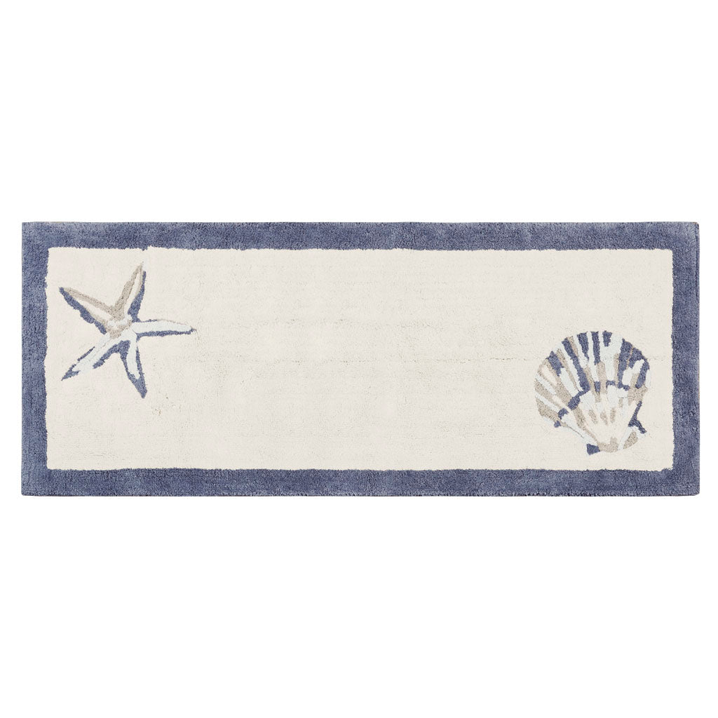 Bring a relaxed coastal vibe to your bathroom with this plush, reversible high-pile tufted bath rug. Crafted from 100% cotton and featuring shell and seaside motifs in soothing blue and taupe, the rug combines soft texture with durable construction for everyday comfort and easy care. Its cut-and-loop pile delivers a cozy underfoot feel while the machine-washable design keeps upkeep simple—pair with coordinating shower curtains and towels to complete a beach-inspired bath ensemble.