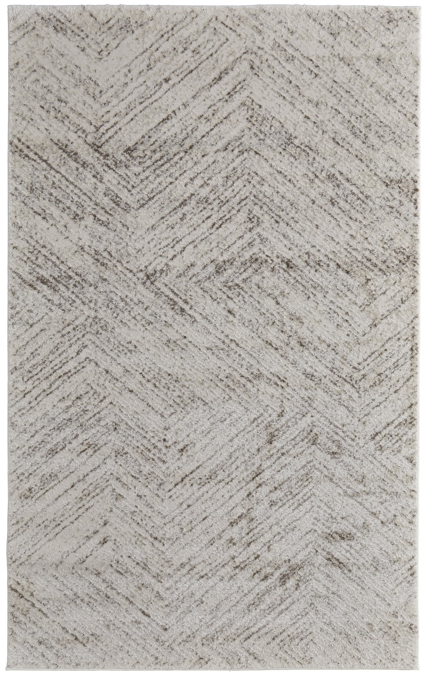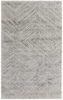 - The rug showcases a contemporary design with abstract, watercolor, and geometric motifs in a neutral color scheme.