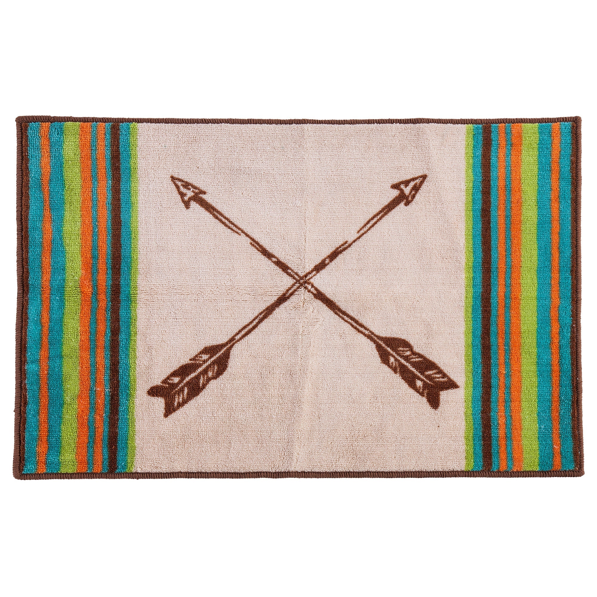 Elevate your home decor with our stunning Serape Arrow Design Rug, a perfect blend of vibrant color and sophisticated Southwestern style. This accent rug is designed to bring the warmth of the desert into your living spaces, featuring an eye-catching pattern of earth-tone crossed arrows at its center, bordered by lively vertical stripes. Ideal for kitchens or bathrooms, this rug not only enhances your decor but also prioritizes safety with its anti-slip latex backing. Complete your Southwestern aesthetic by pairing it with other items from our Serape Collection, creating a cohesive and inviting atmosphere in your home.