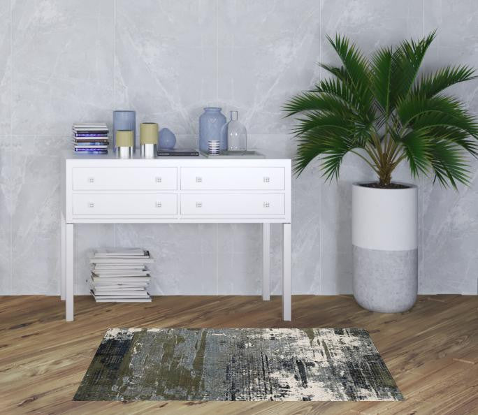 - Contemporary, industrial style indoor area rug