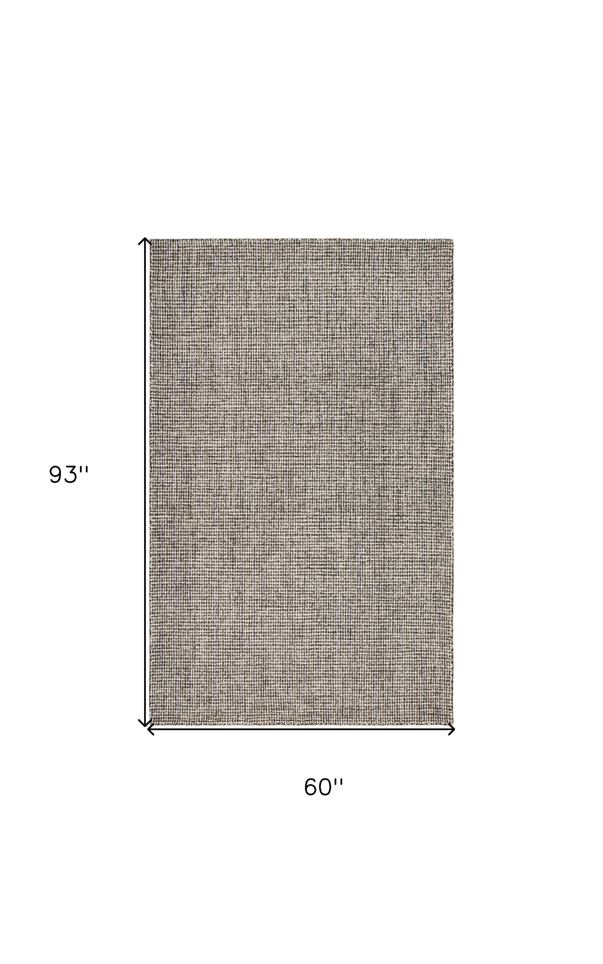 - Handmade wool area rug in modern gray design.