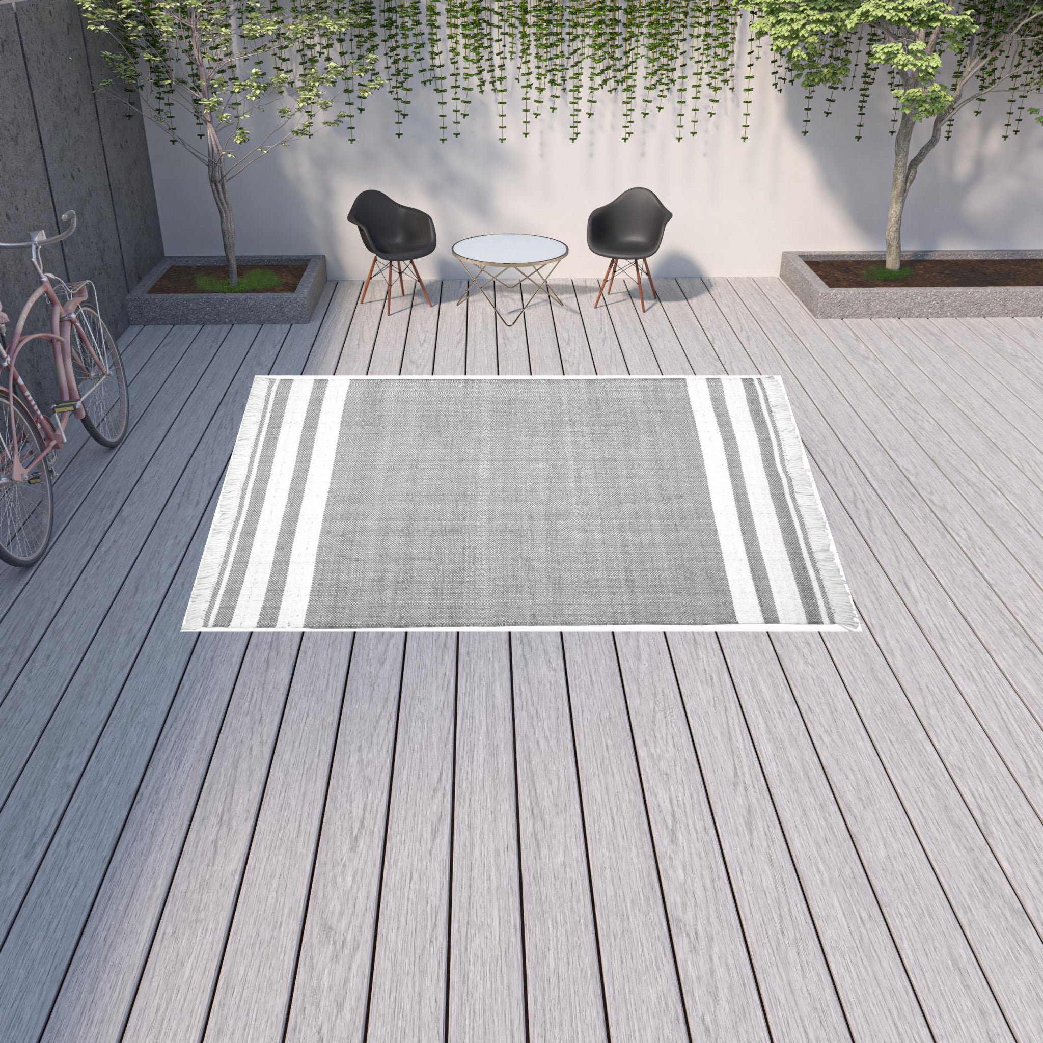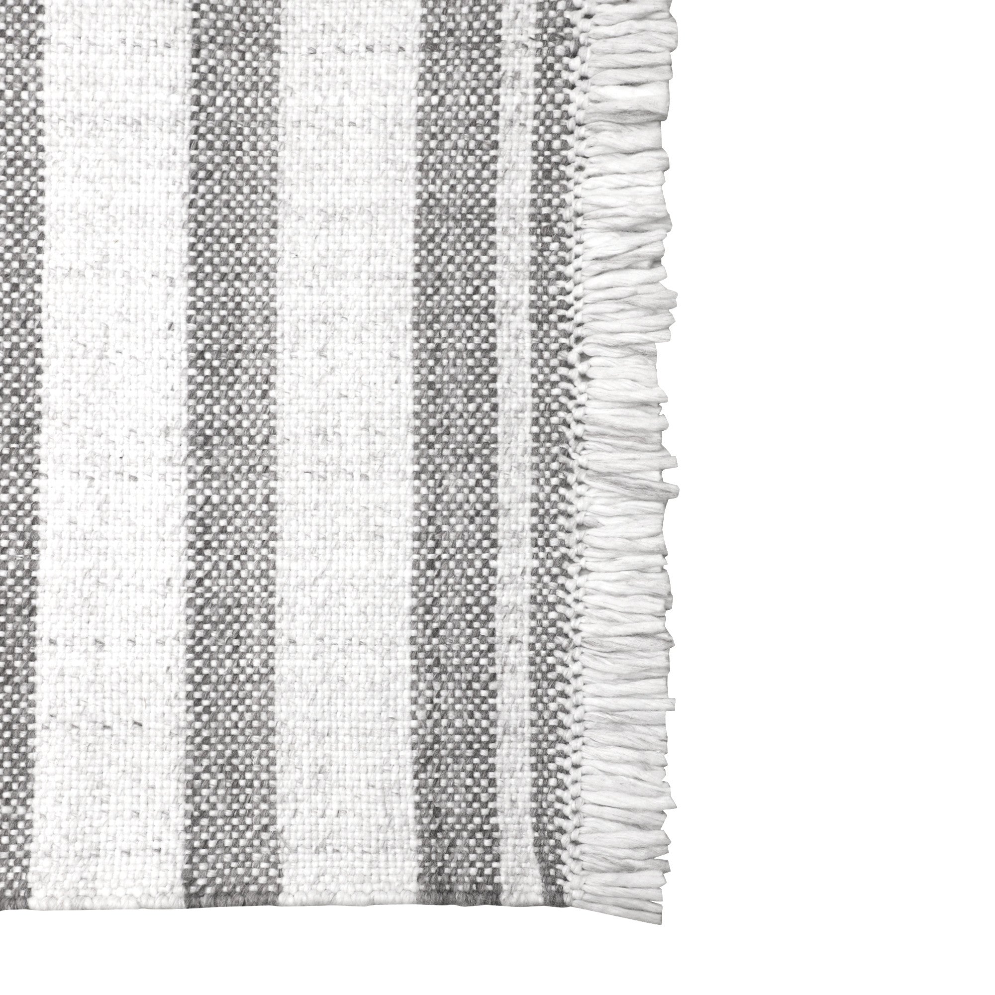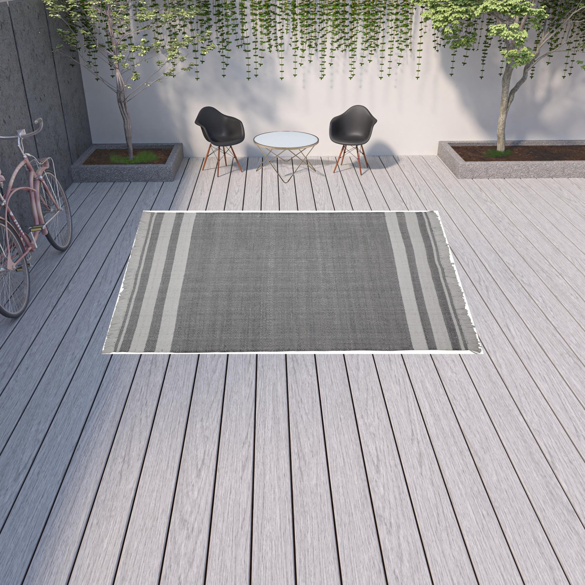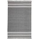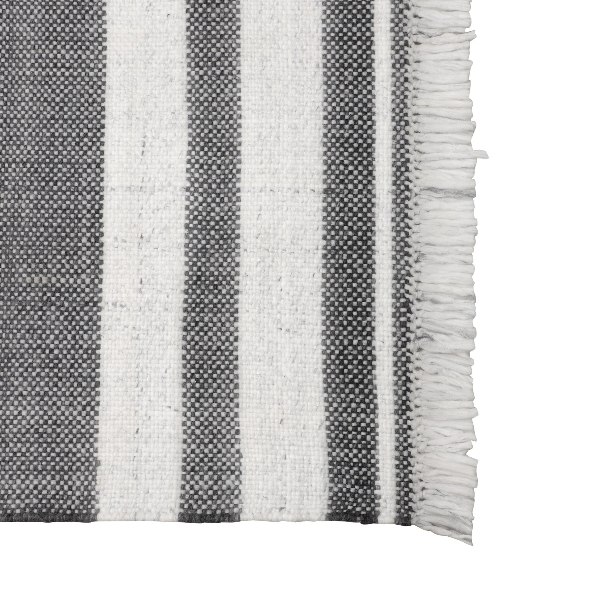 - Handwoven outdoor rug with a modern striped pattern.