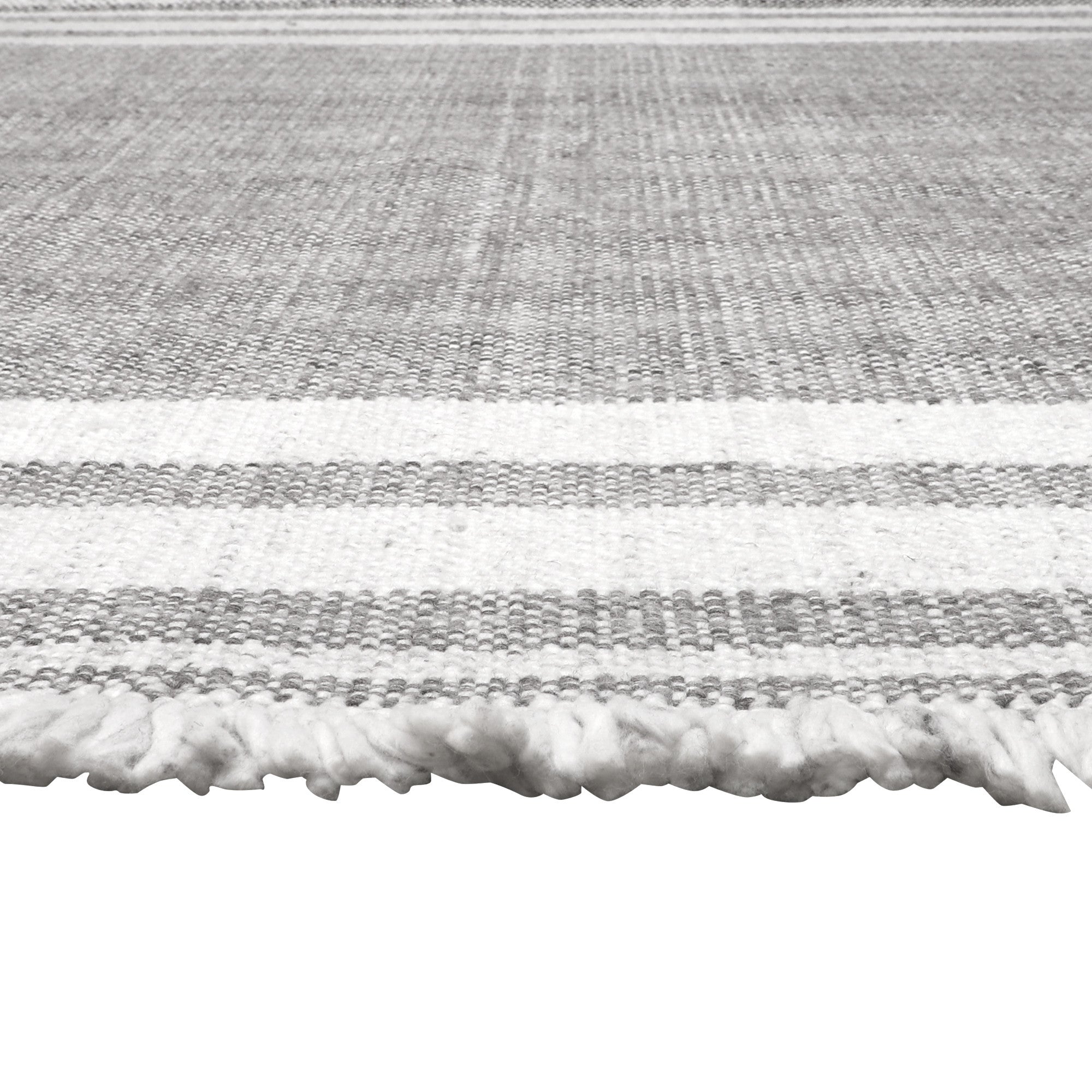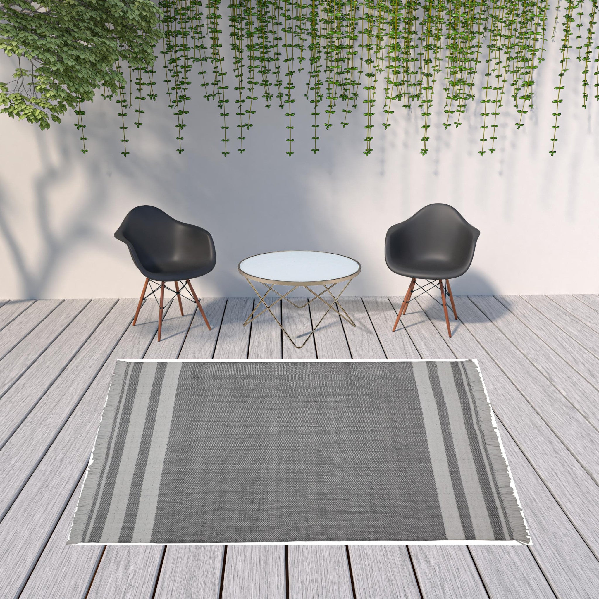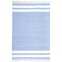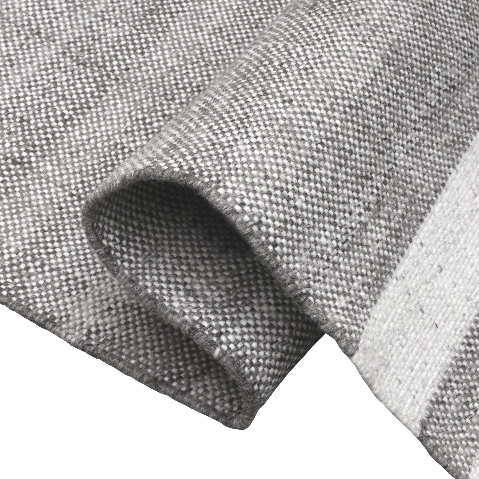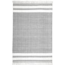 - Handwoven outdoor rug with a modern striped pattern.