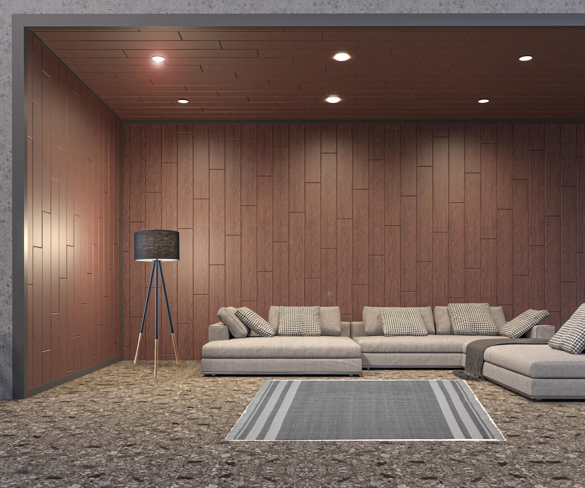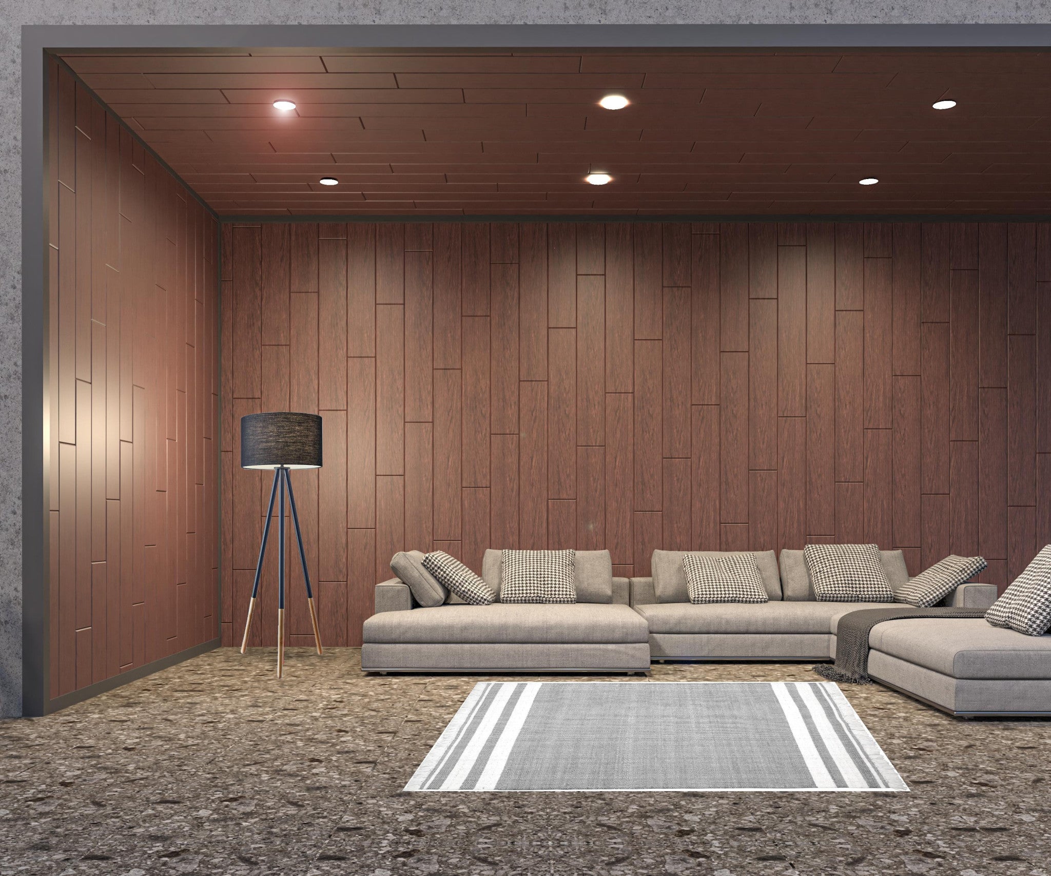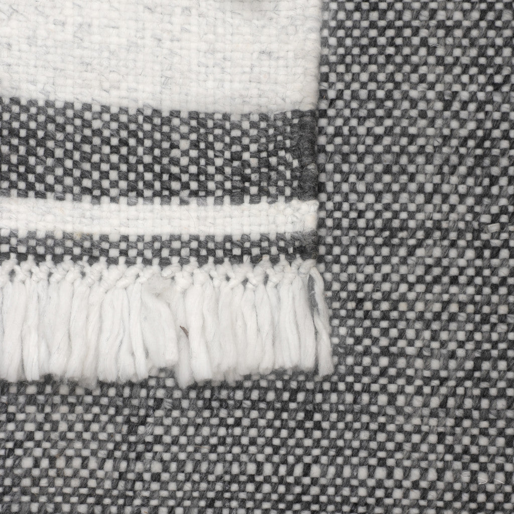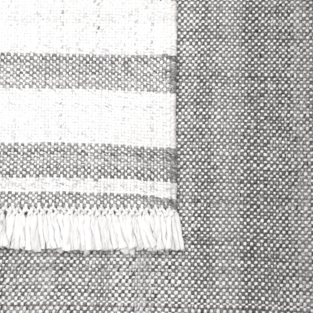 - Handwoven outdoor rug with a modern striped pattern.