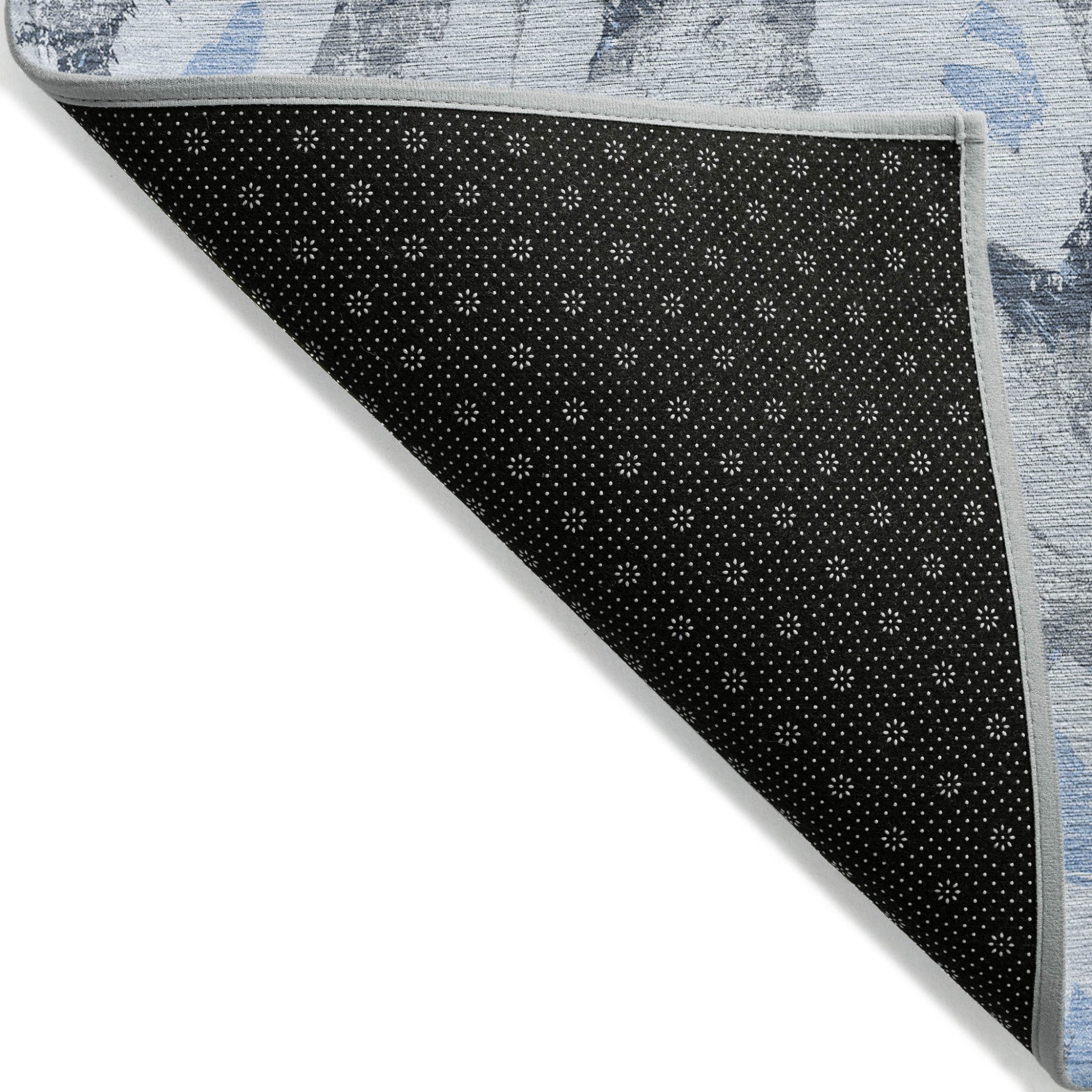 - A felt backing covers this rug to finish the look, keep the fibers in place, and help to keep the rug from slipping.