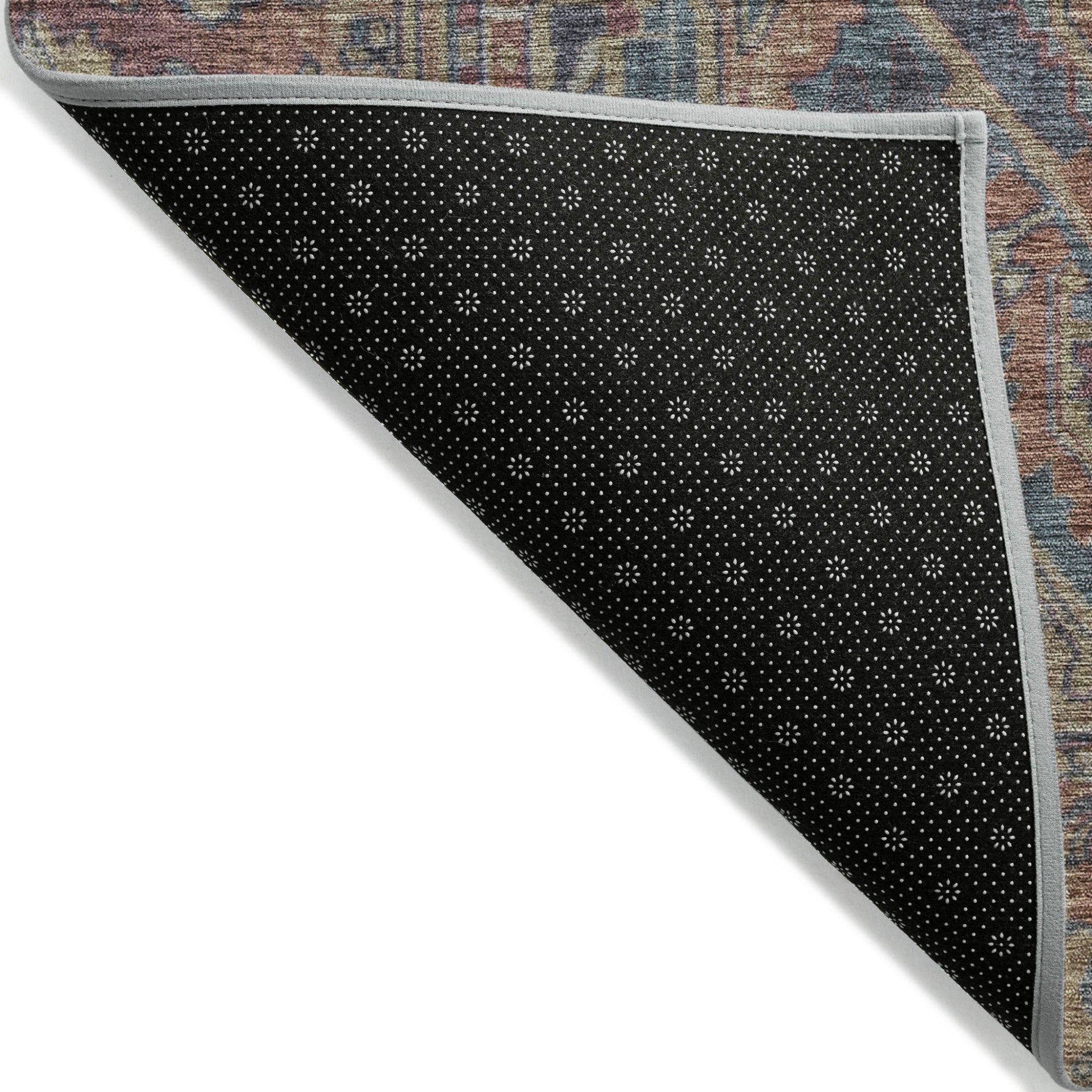 - A felt backing covers this rug to finish the look, keep the fibers in place, and help to keep the rug from slipping.