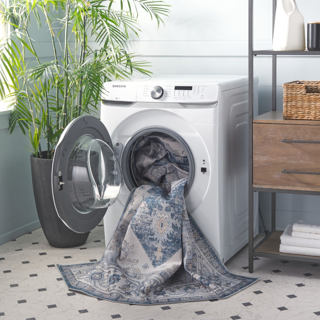 Crafted from premium polyester, this rug not only offers a luxuriously soft feel underfoot but also boasts practical features like being washable and slip resistant, making it an ideal choice for high-traffic areas. Despite its delicate appearance, this piece is durable and designed to withstand the rigors of daily use.